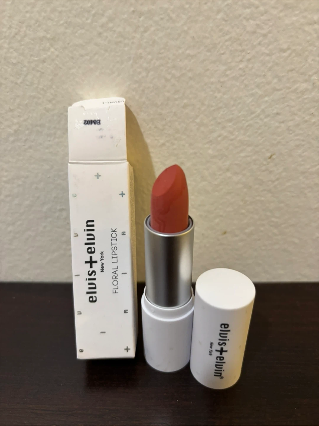 This is the Elvis + Elvin Floral Lipstick in a lovely shade. It comes with its original box. The lipstick is a creamy matte formula.