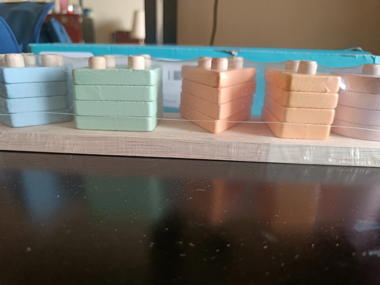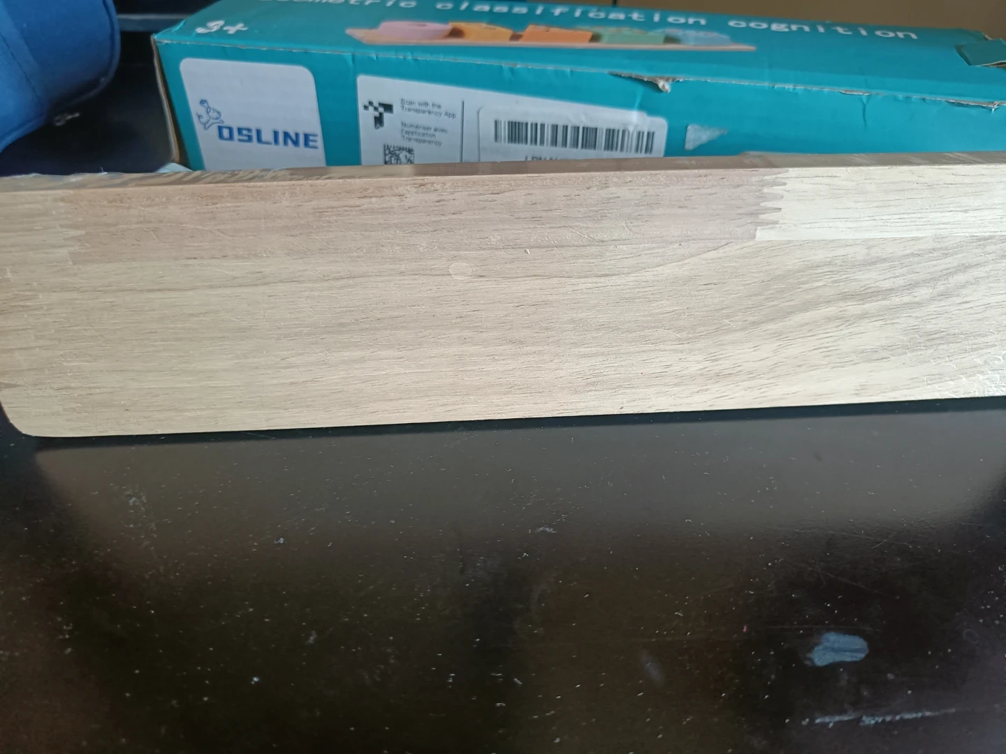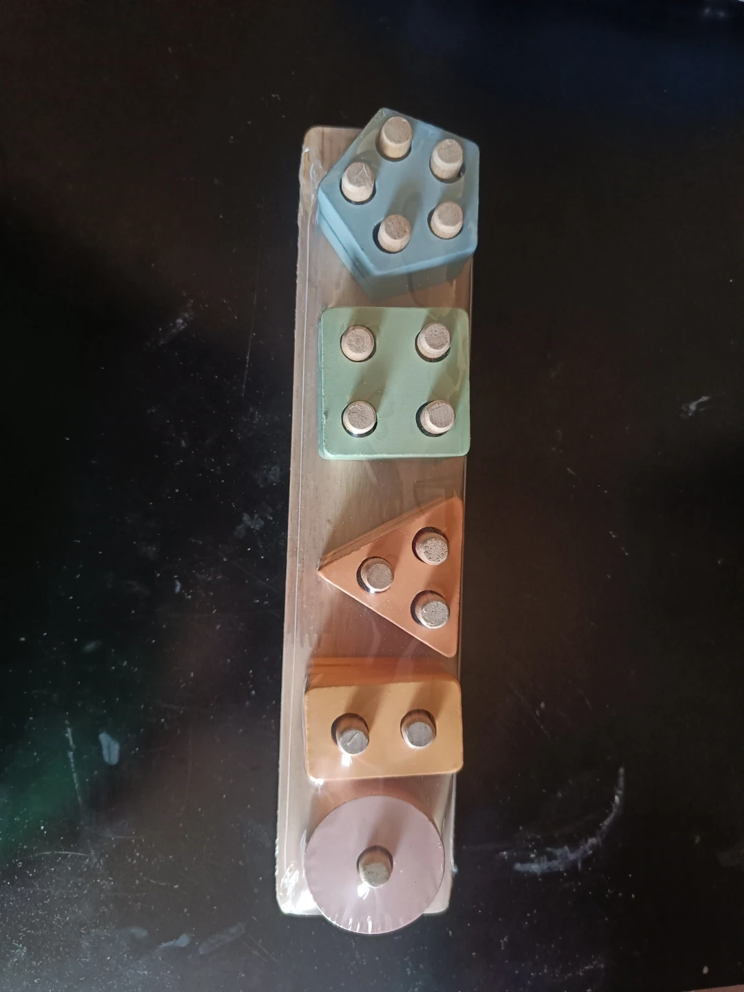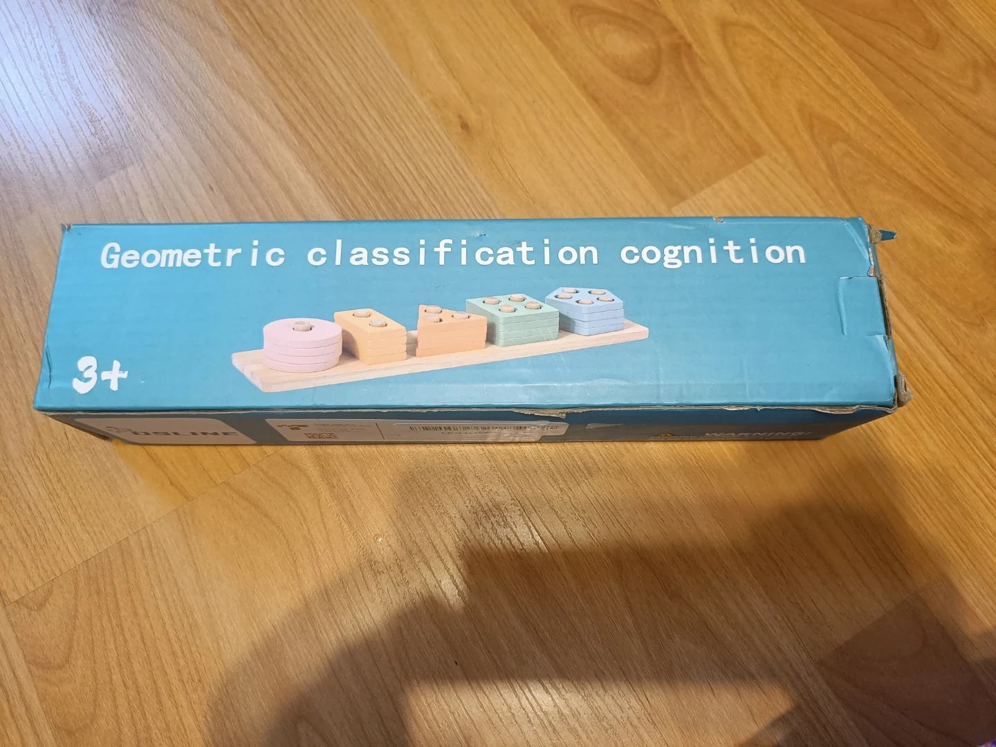 Wooden toy for ages 3+! It's a geometric shape sorter with five different shapes and colours. Includes original box.