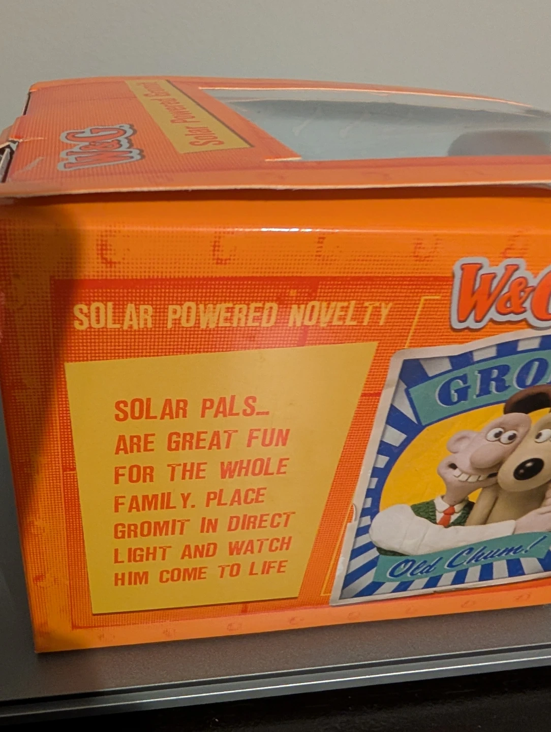 Wallace & Gromit Solar Powered Novelty toy. Solar pals are great fun for the whole family. Place Gromit in direct light and watch him come to life!