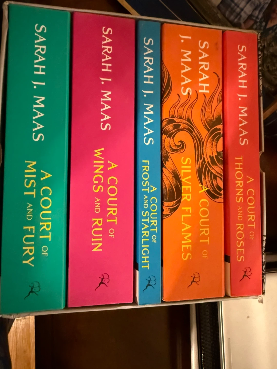 This is the complete A Court of Thorns and Roses series box set by Sarah J. Maas. It includes the first five books in the series. All books are paperback.