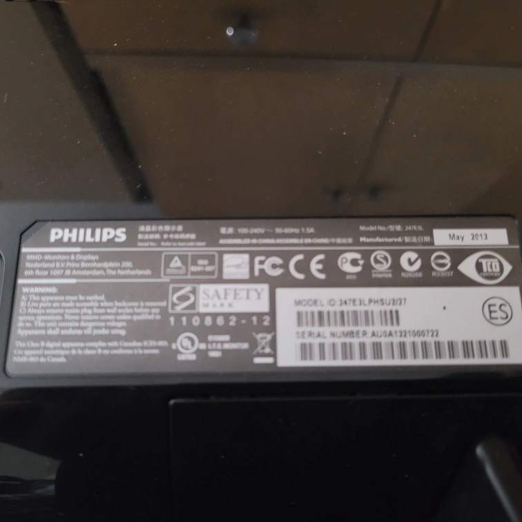 Philips 24" computer display monitor with stand and cables. 24 inch.