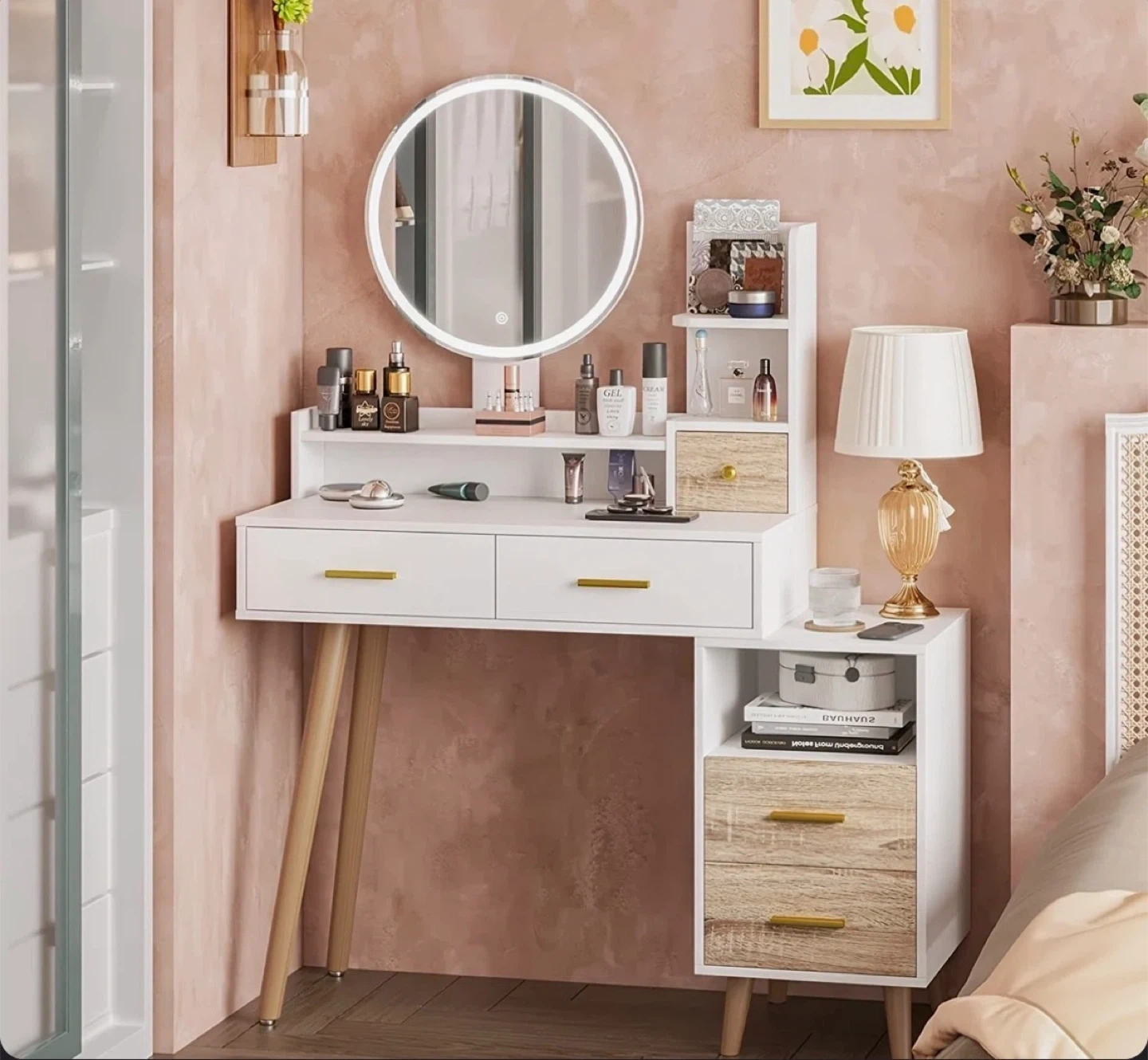 White Vanity Desk with LED Mirror