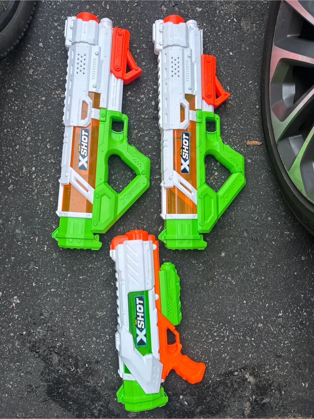 Selling a set of three X-Shot water blasters! Two are larger, and one is smaller. They're in great shape and ready for some summer fun