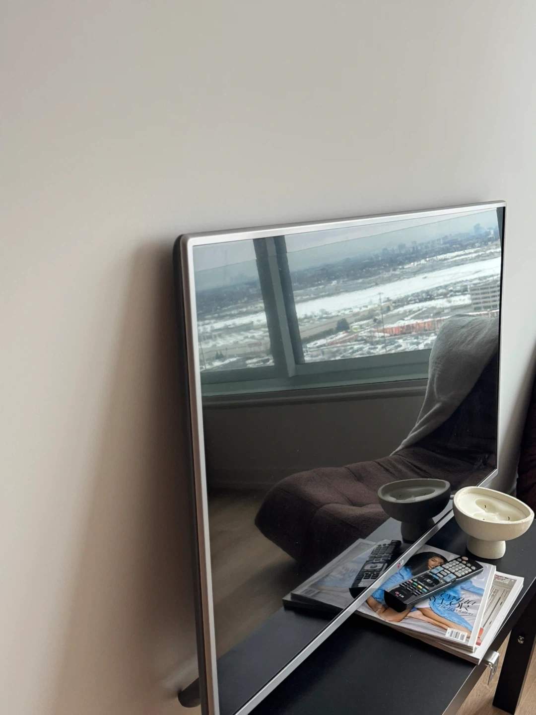 LG television. It's a flat-screen model. Includes remote.