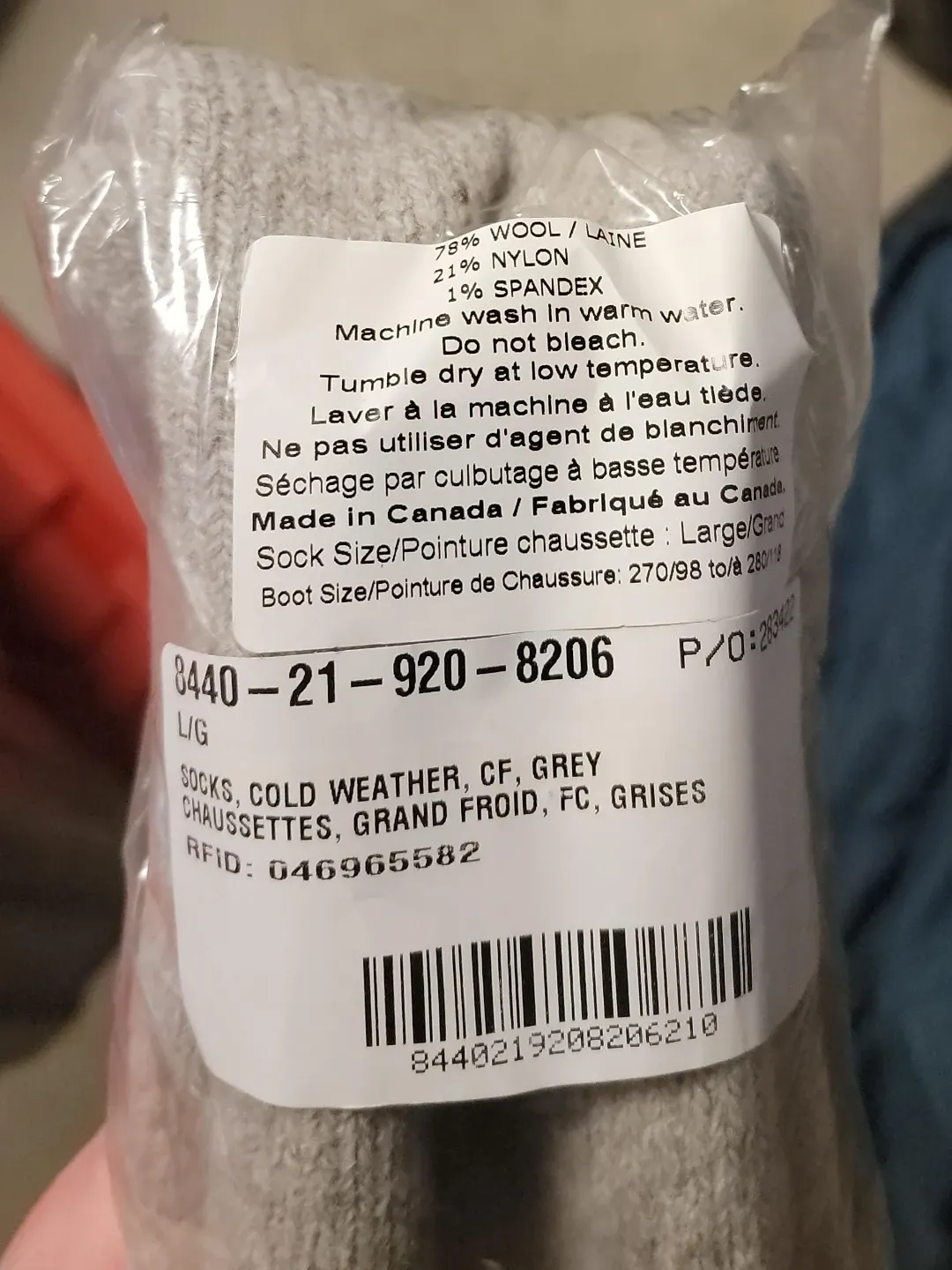 Selling a pair of cold weather socks, perfect for those chilly Canadian days! They're a size large and come in a neutral grey colour.