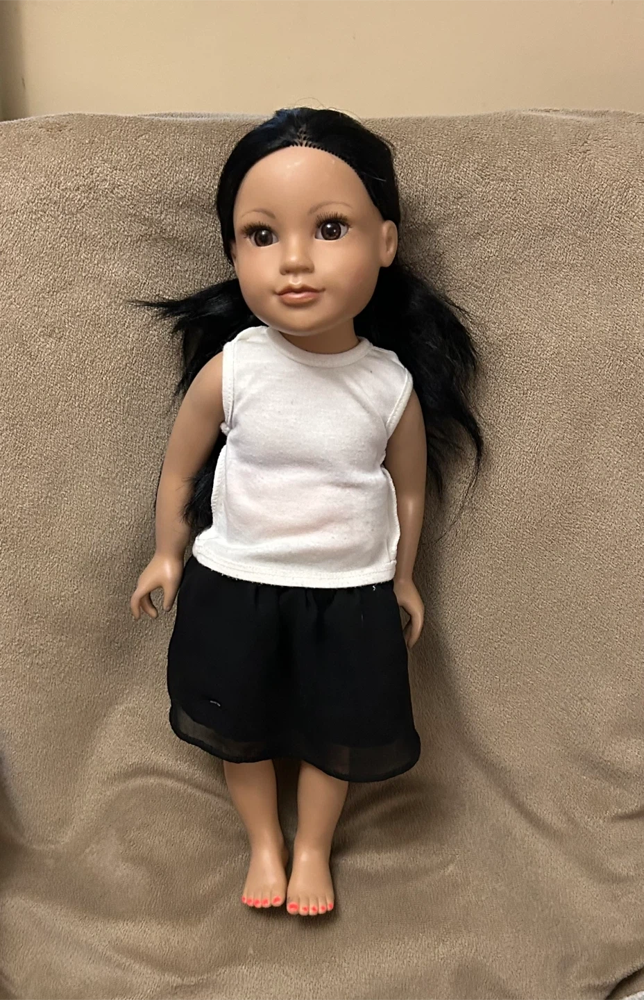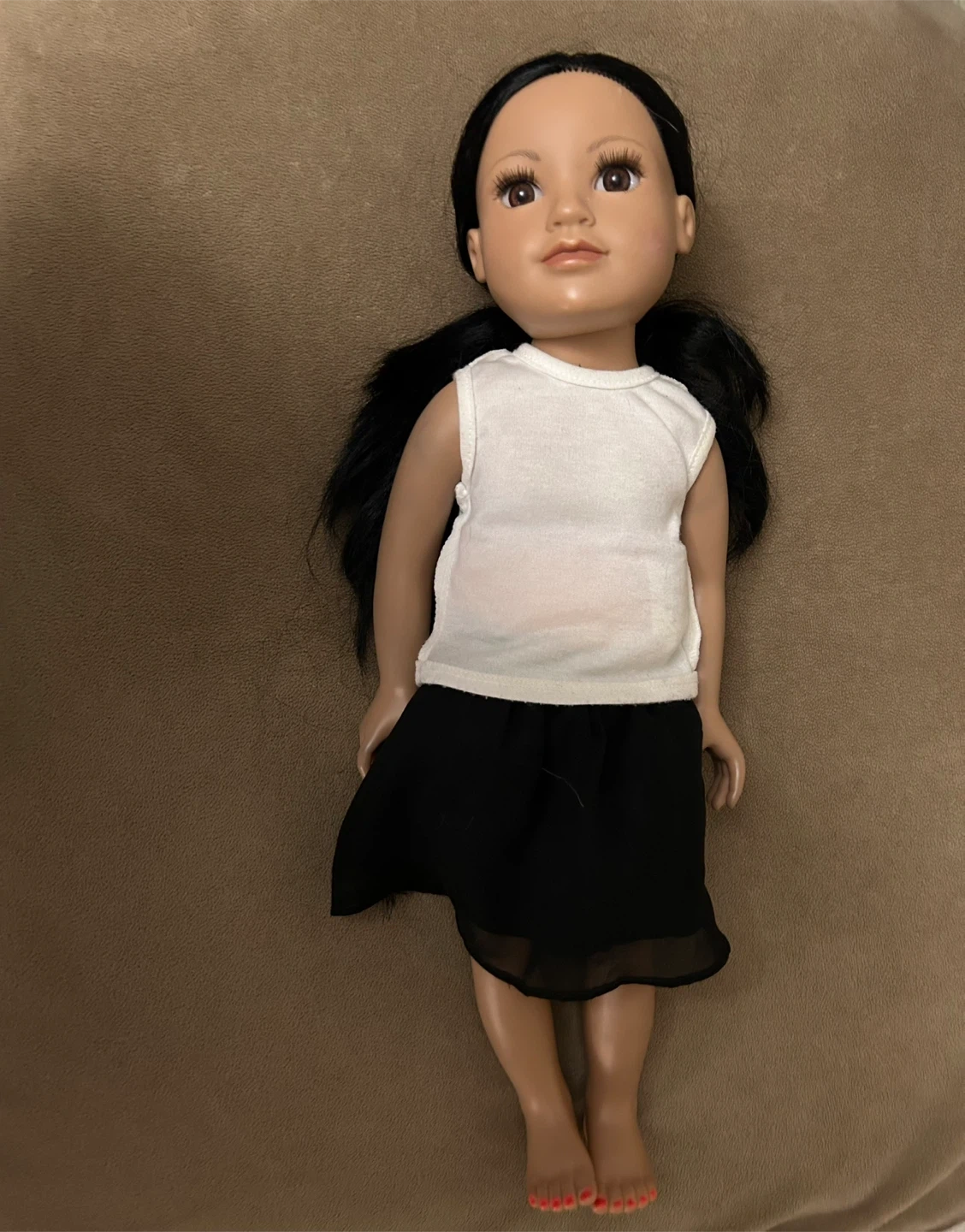 This is a My Life As doll in great condition. She has dark hair and brown eyes. This doll is ready for a new home.