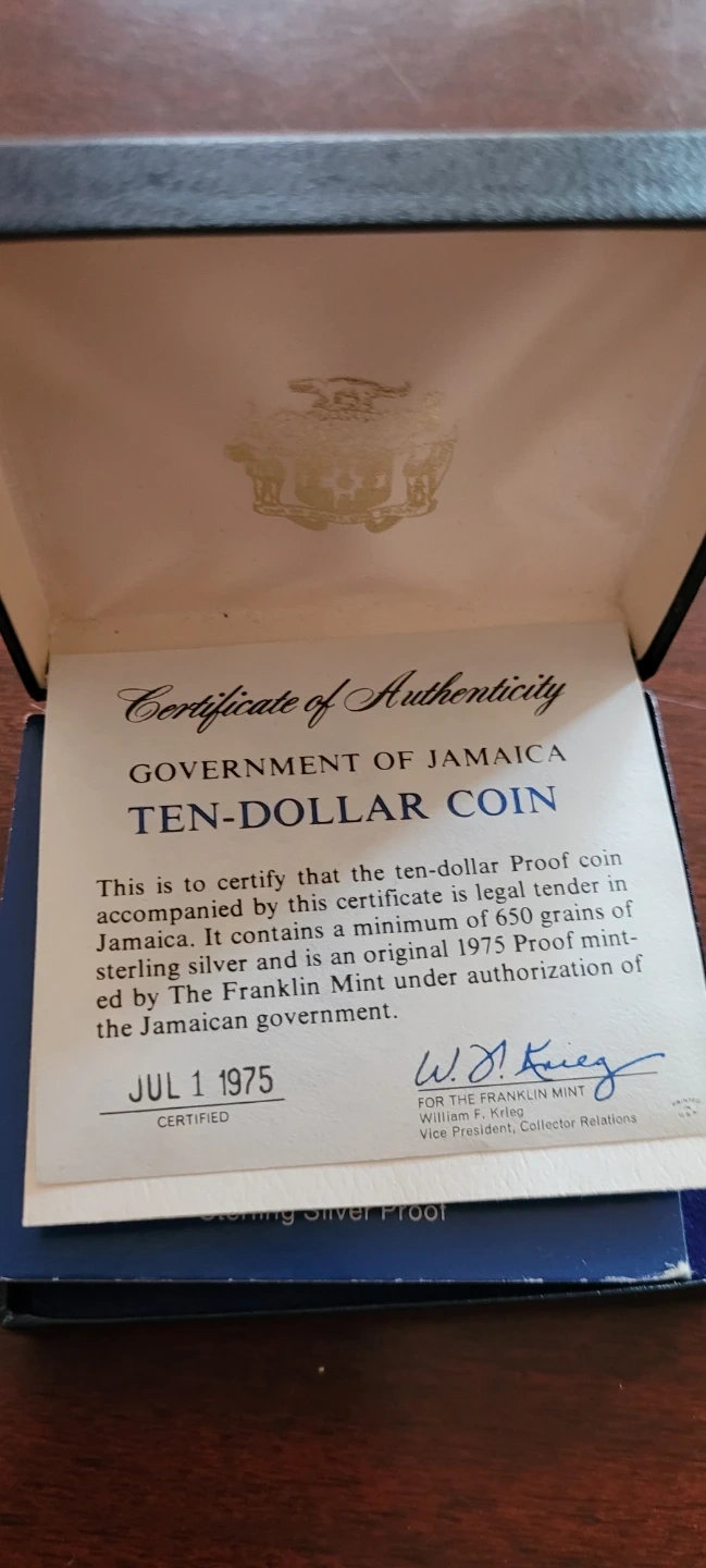 Buy & Sell1975 Jamaica Ten Dollar Silver Proof Coin1975 Jamaica Ten Dollar Silver Proof Coin$185Sterling silver 42.8g WHERE TO MEETCheck LocationView MapSELLERAaronOliver505 reviews1 chats·0 favorites·32 viewsSEND CHAT TO SELLERHi Aaron! I’m interested in your listing.Hi Aaron! I’m interested in your listing.Get the Karrot app to chatSign In to chat