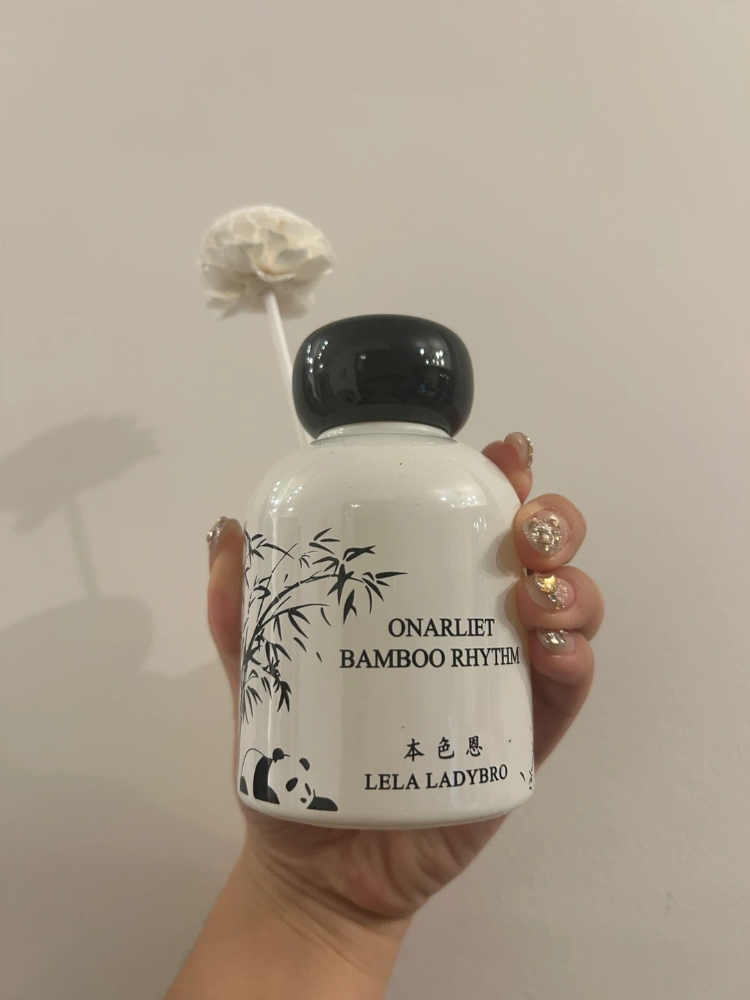 Lela Ladybro Onarliet Bamboo Rhythm diffuser comes in a 160ml bottle. It's designed to provide a tranquil fragrance experience. The diffuser includes rattan sticks for scent dispersal.