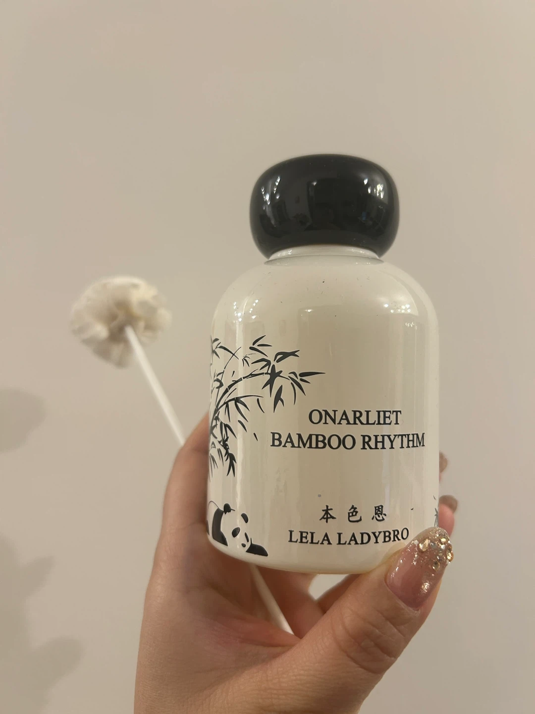 Lela Ladybro Onarliet Bamboo Rhythm diffuser comes in a 160ml bottle. It's designed to provide a tranquil fragrance experience. The diffuser includes rattan sticks for scent dispersal.