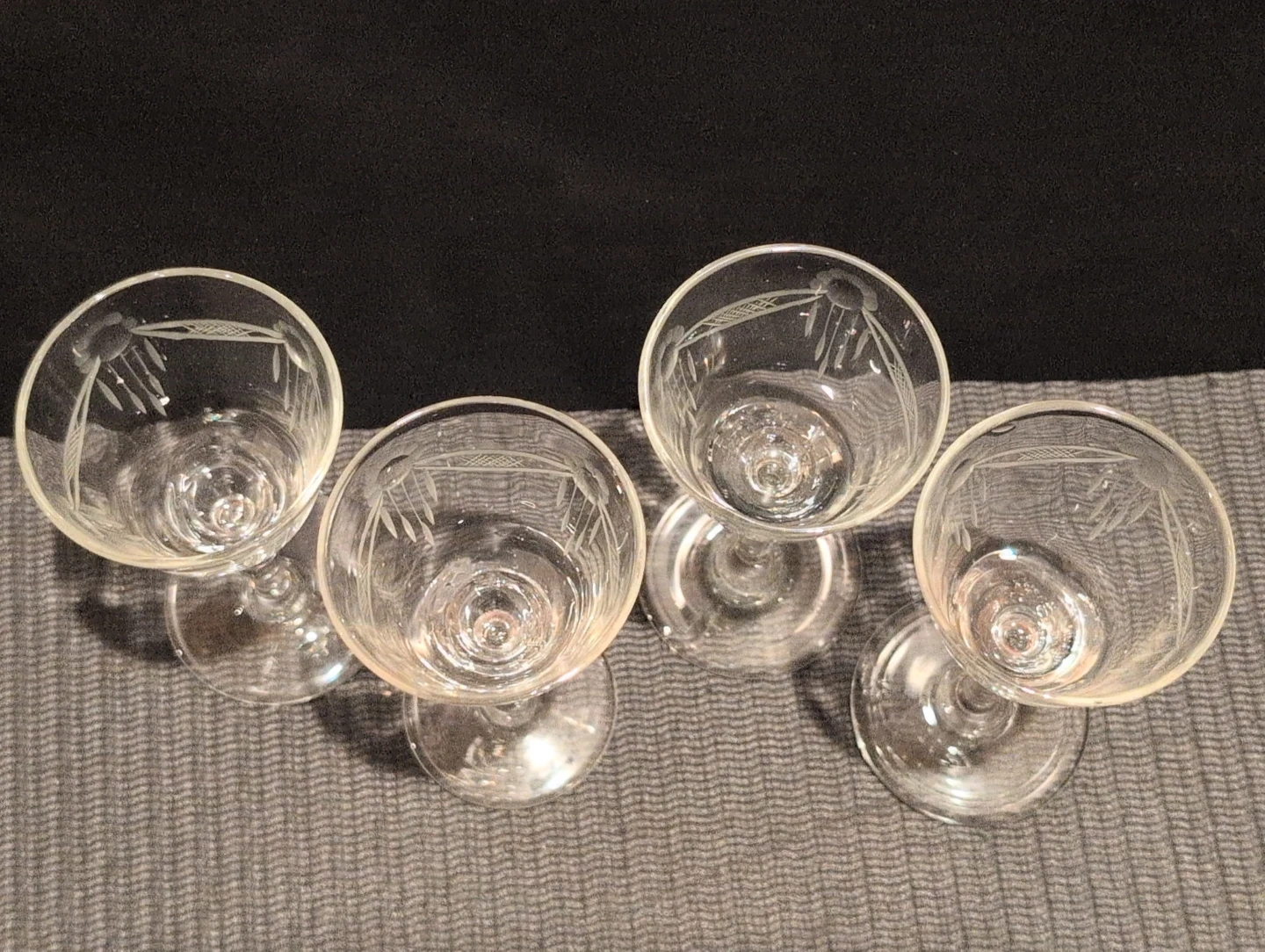 Set of 4 Etched Glass Vintage Cordial Glasses