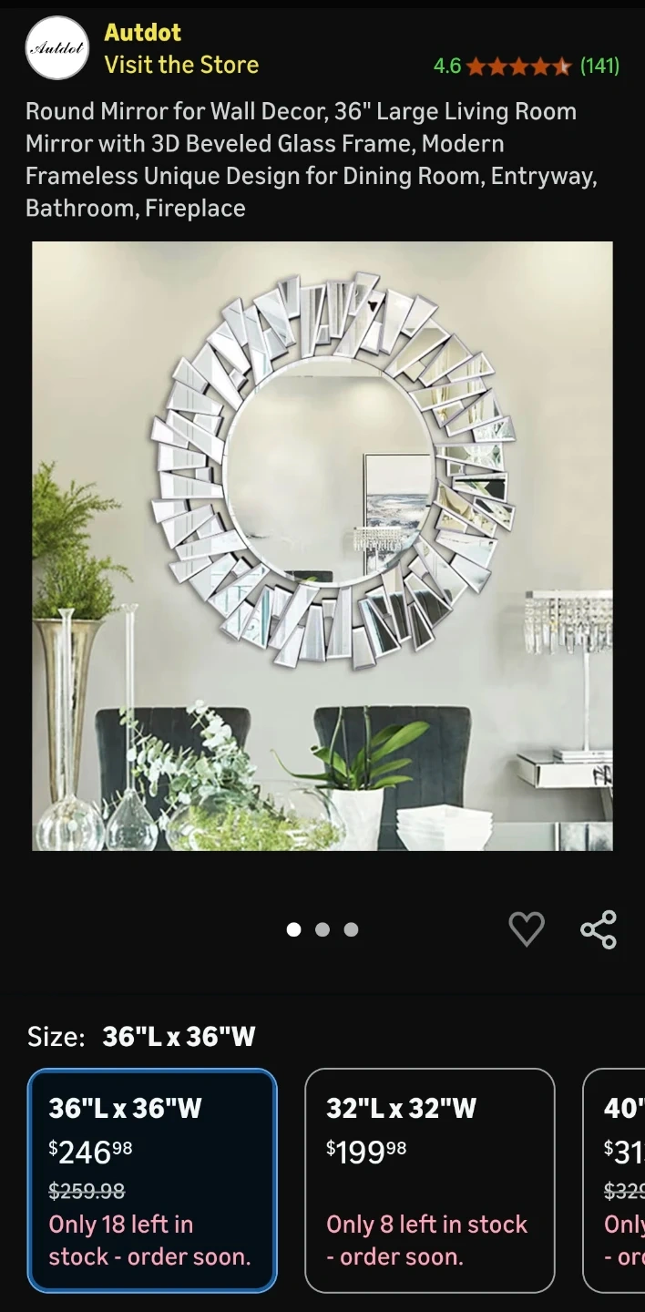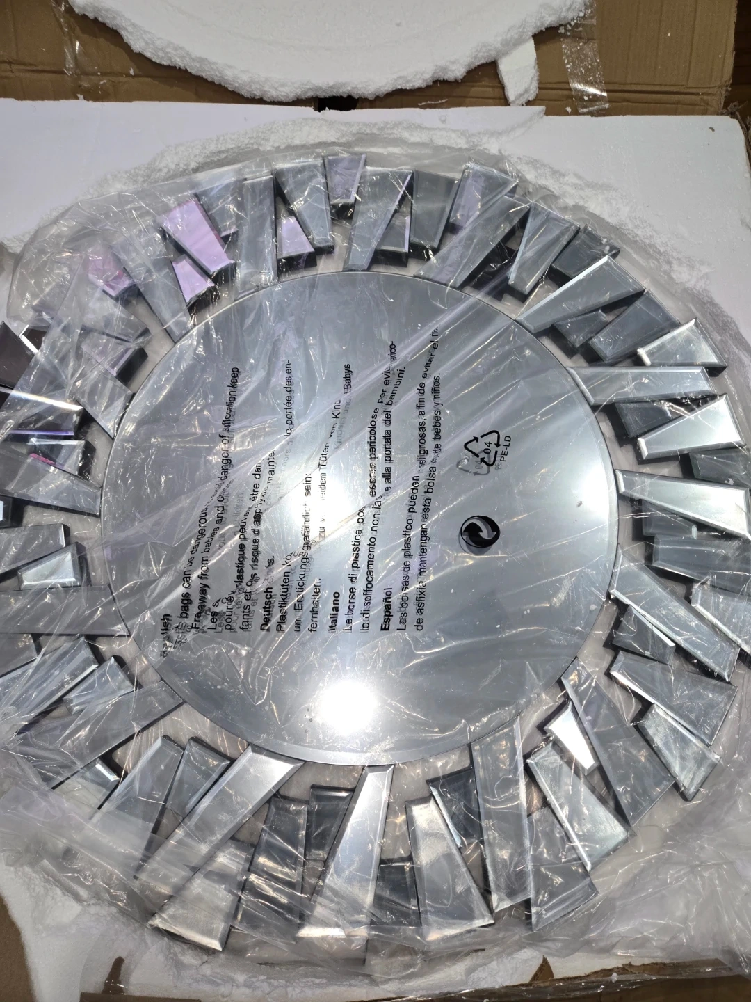 (Please check out pic 5&6) Selling a brand new Autdot round mirror for wall decor! This mirror features a 3D beveled glass frame and a modern, frameless unique design. It measures 36"L x 36"W. It's still in the box!