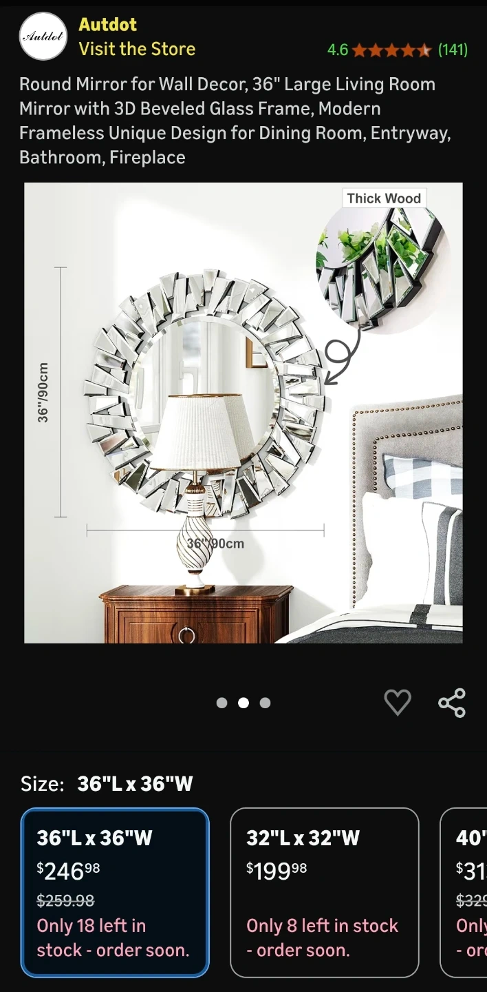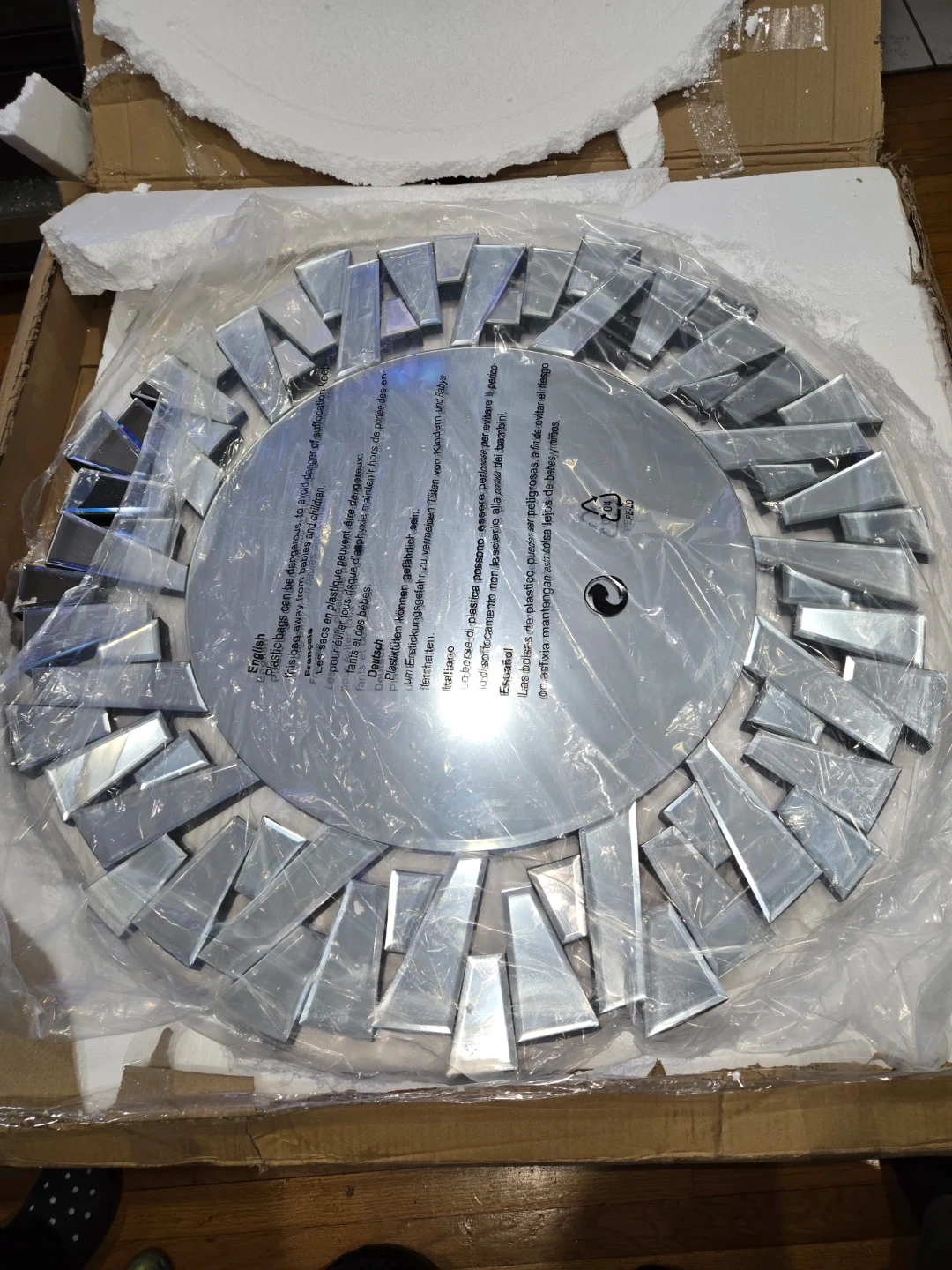 (Please check out pic 5&6) Selling a brand new Autdot round mirror for wall decor! This mirror features a 3D beveled glass frame and a modern, frameless unique design. It measures 36"L x 36"W. It's still in the box!