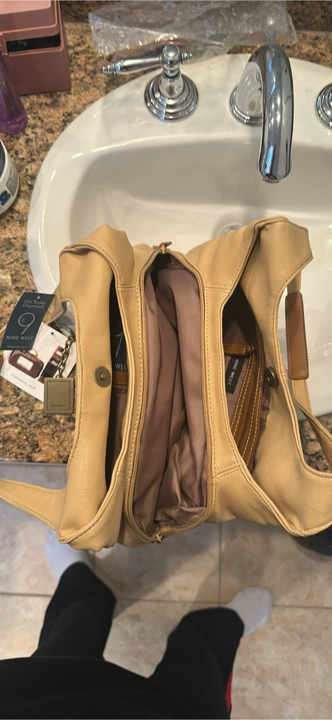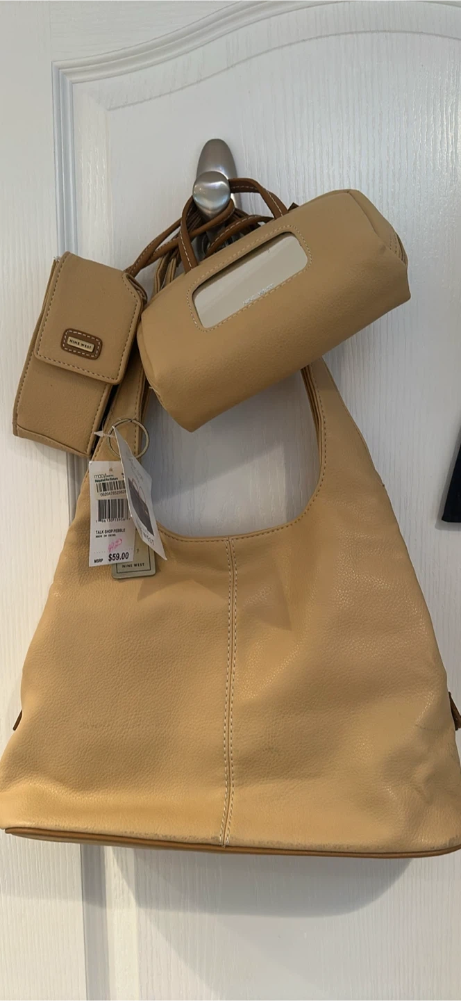 Brand new Nine West beige faux leather shoulder bag. It comes with a matching wallet and a small pouch.
