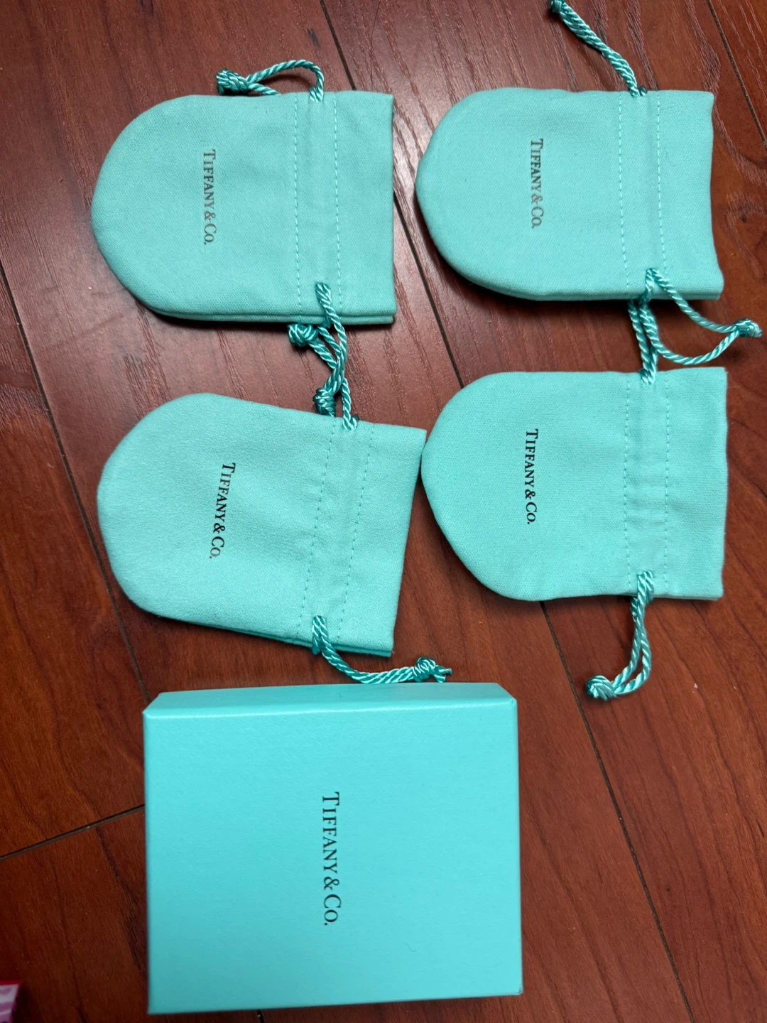 Selling a set of Tiffany & Co. pouches along with the box. Perfect for storing your precious jewellery!