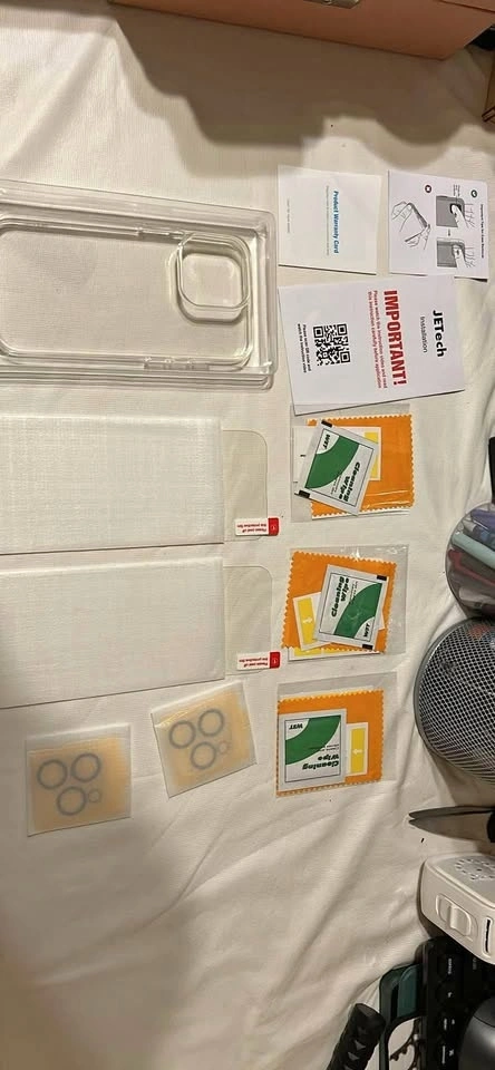 Comes with great quality protective case, 2 screen protector, 2 lens protectors, and 3 screen/lens cleaner packs for the screen protectors and lens protectors. Great if you work in a place with high risk of damaging your phone 👌