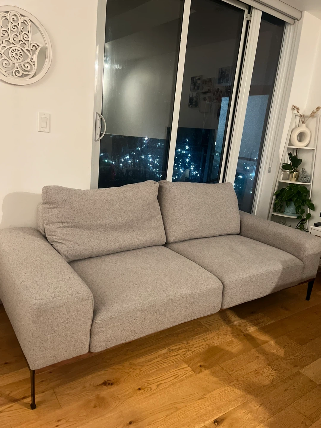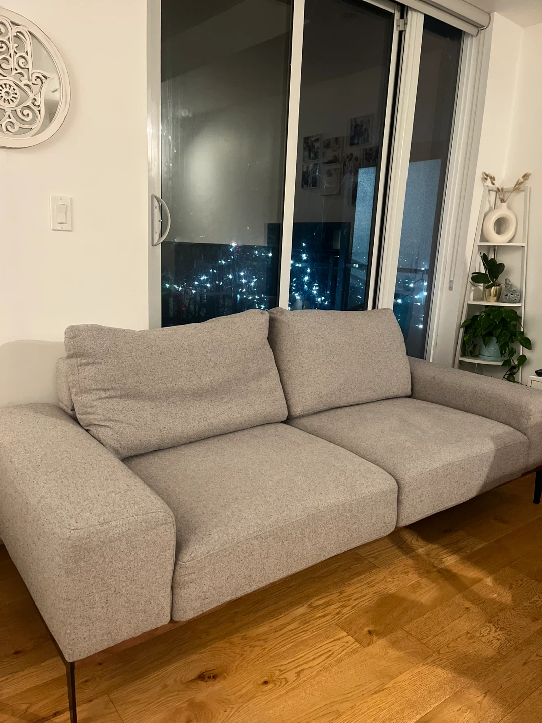 Structube 3-seater sofa, wide and comfortable, and aesthetically appealing for compact condo spaces or office. Beautiful light grey color. Very good condition. Bought in Feb 2025 for $900 CAD including tax.