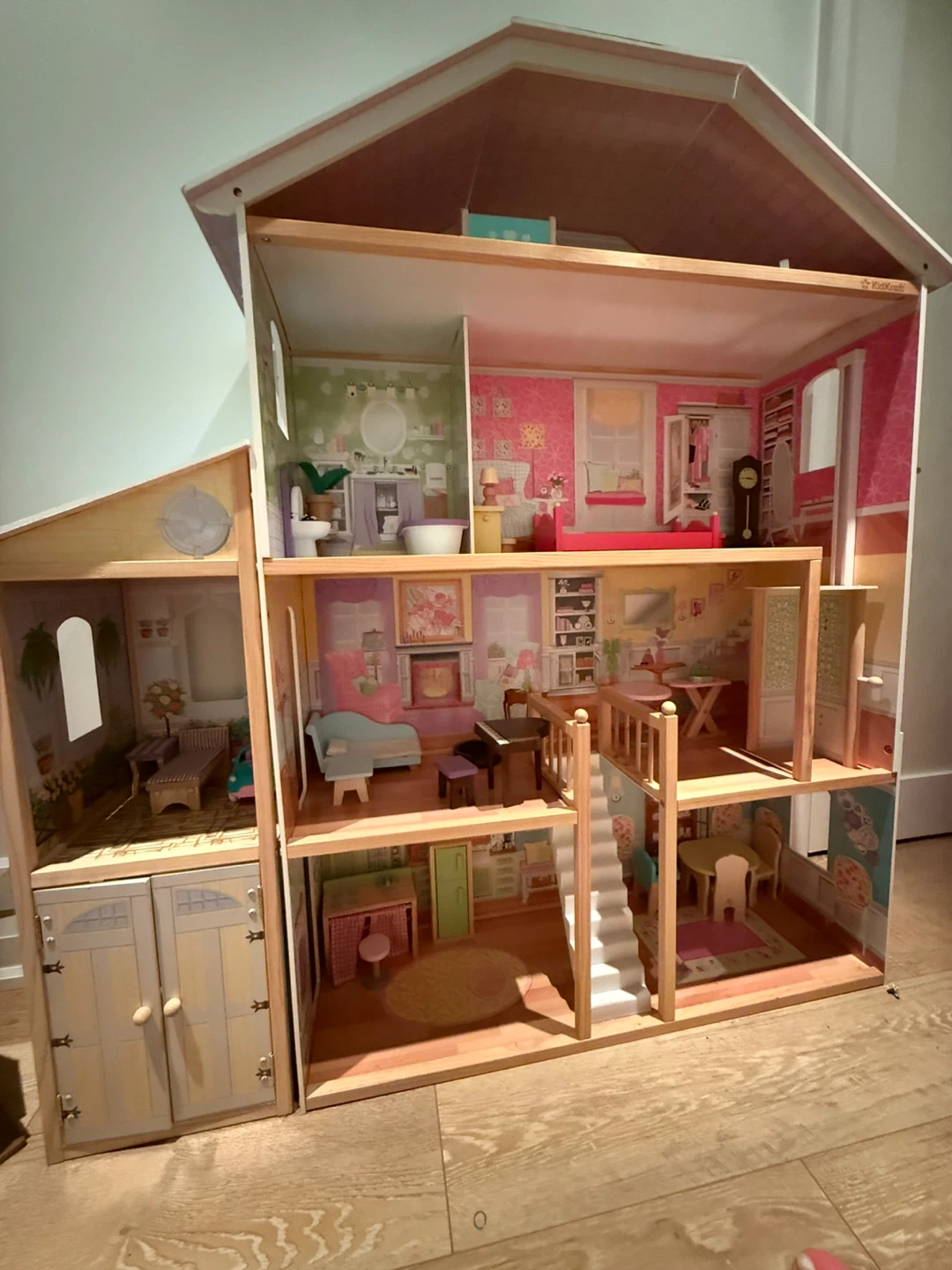 Selling a KidKraft Majestic Mansion wooden dollhouse. It comes with 34-piece accessories, a working elevator, and a garage! It's perfect for ages 3+. Originally bought for $324.99