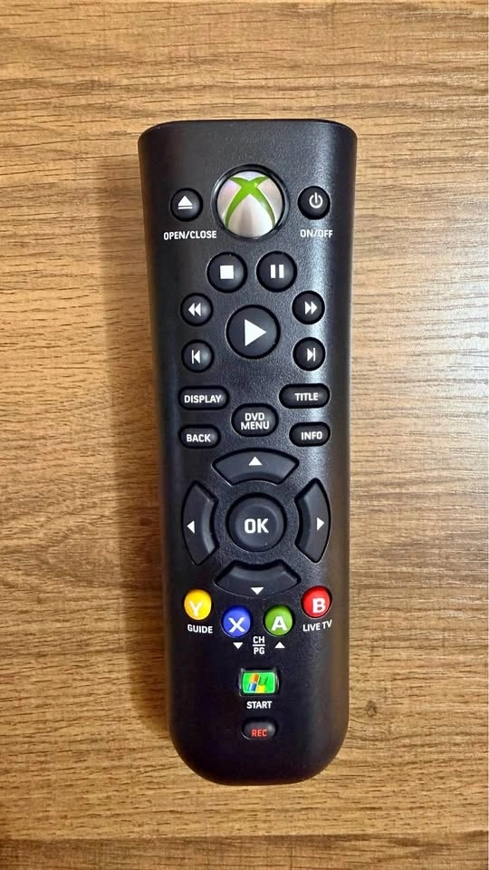 This is a new black Microsoft Xbox 360 media remote. It has all the media controls for movies and music, plus the Xbox guide button. It also includes A, B, X, Y buttons and a Windows Start button.