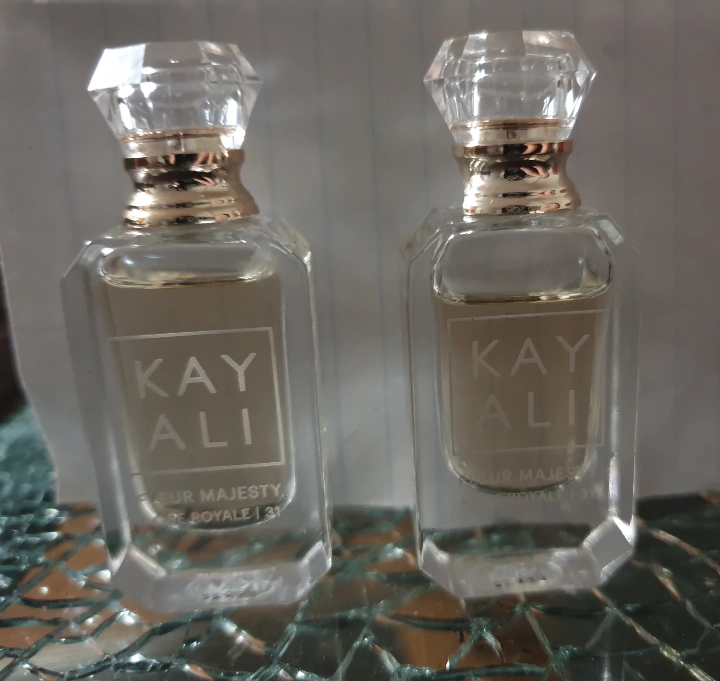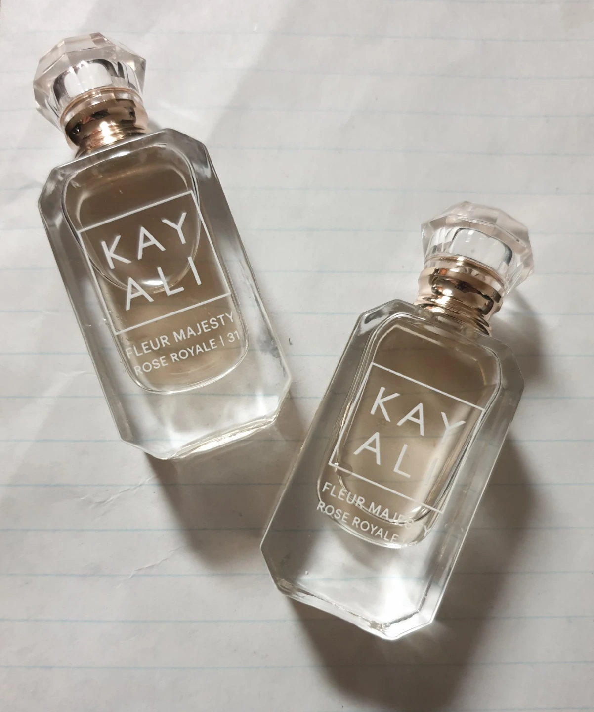 Two bottles of KAYALI Fleur Majesty Rose Royale | 31 perfume. 31ml bottles. A captivating floral scent.
