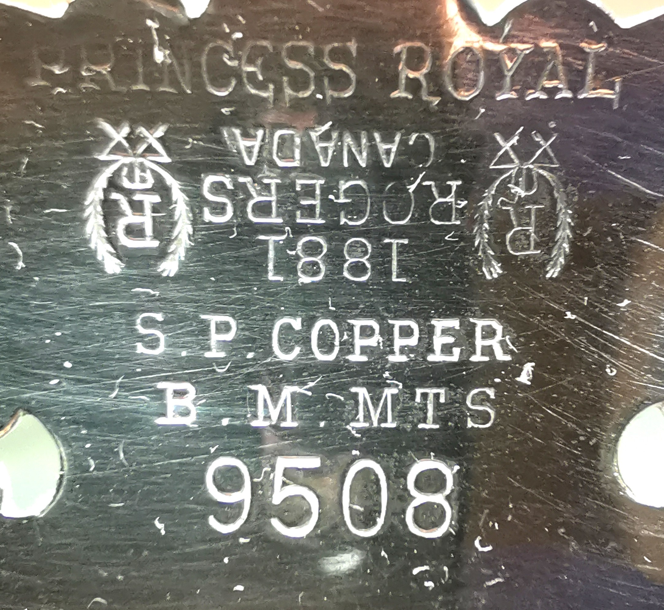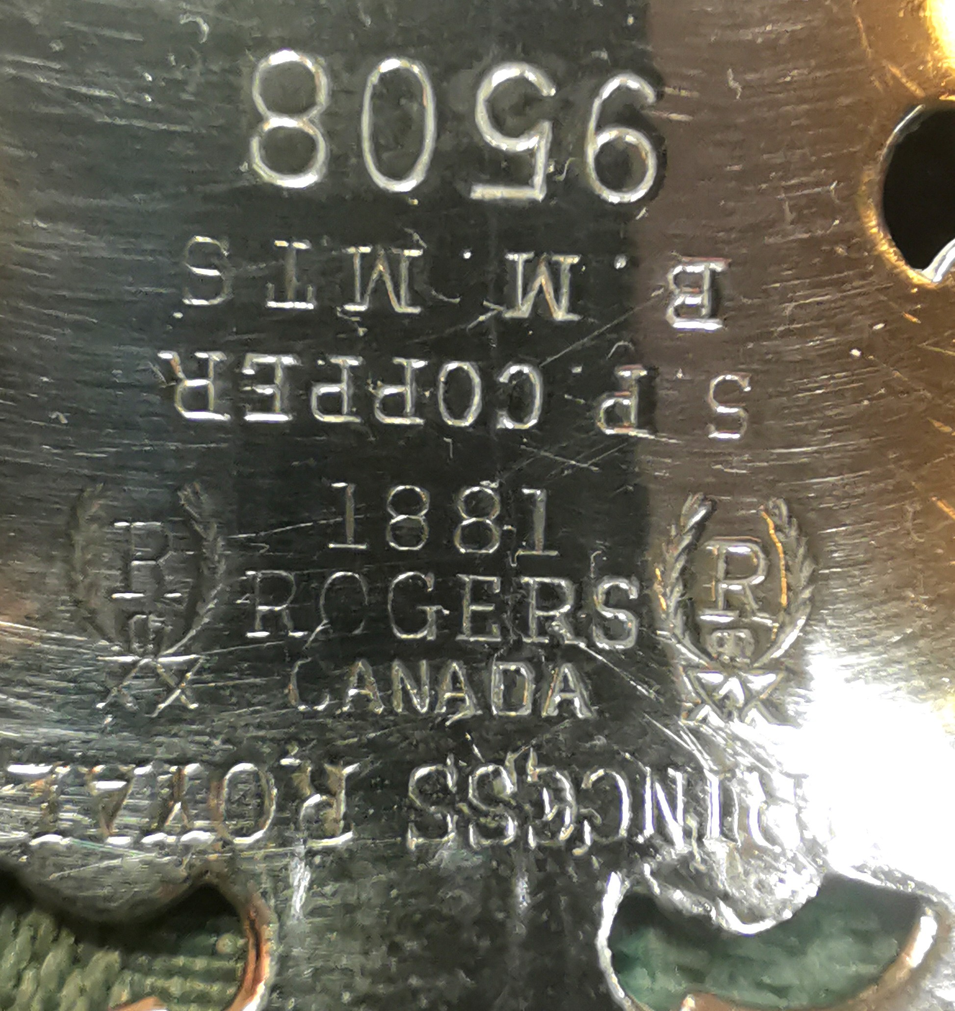 Base Markings: 1881 Rogers Canada, S.P. Copper, B.M. Mts, 9508
