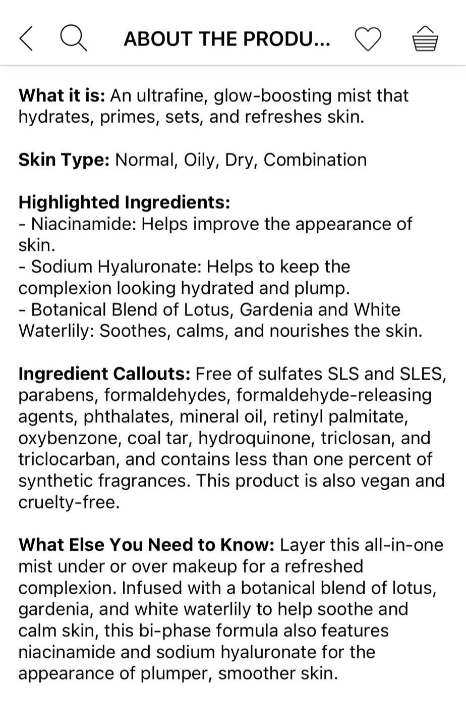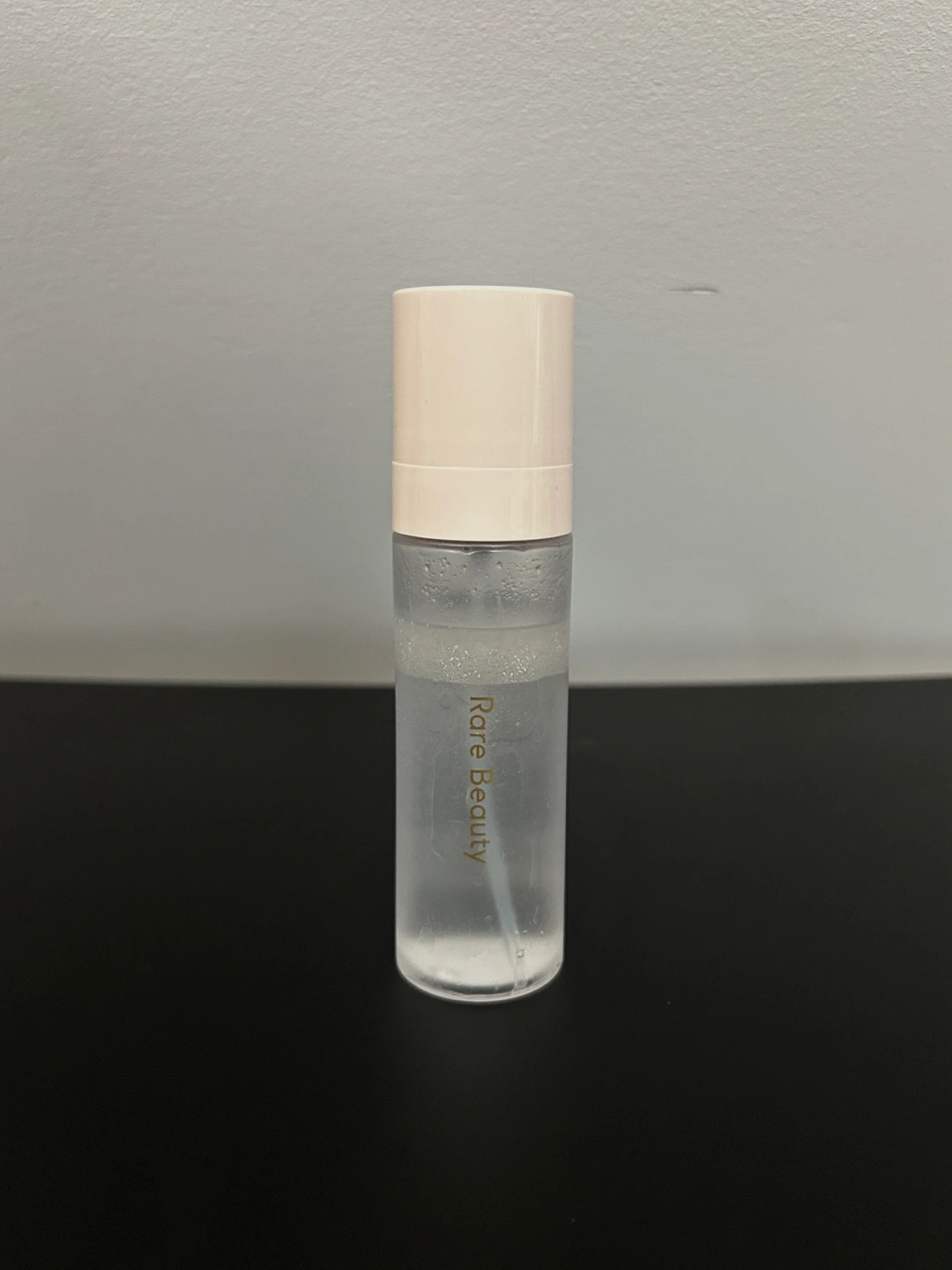 Rare Beauty makeup setting spray. Hydrates, primes, sets, and refreshes skin. Ultrafine, glow-boosting mist. Suitable for all skin types. ~ 1/4 used.