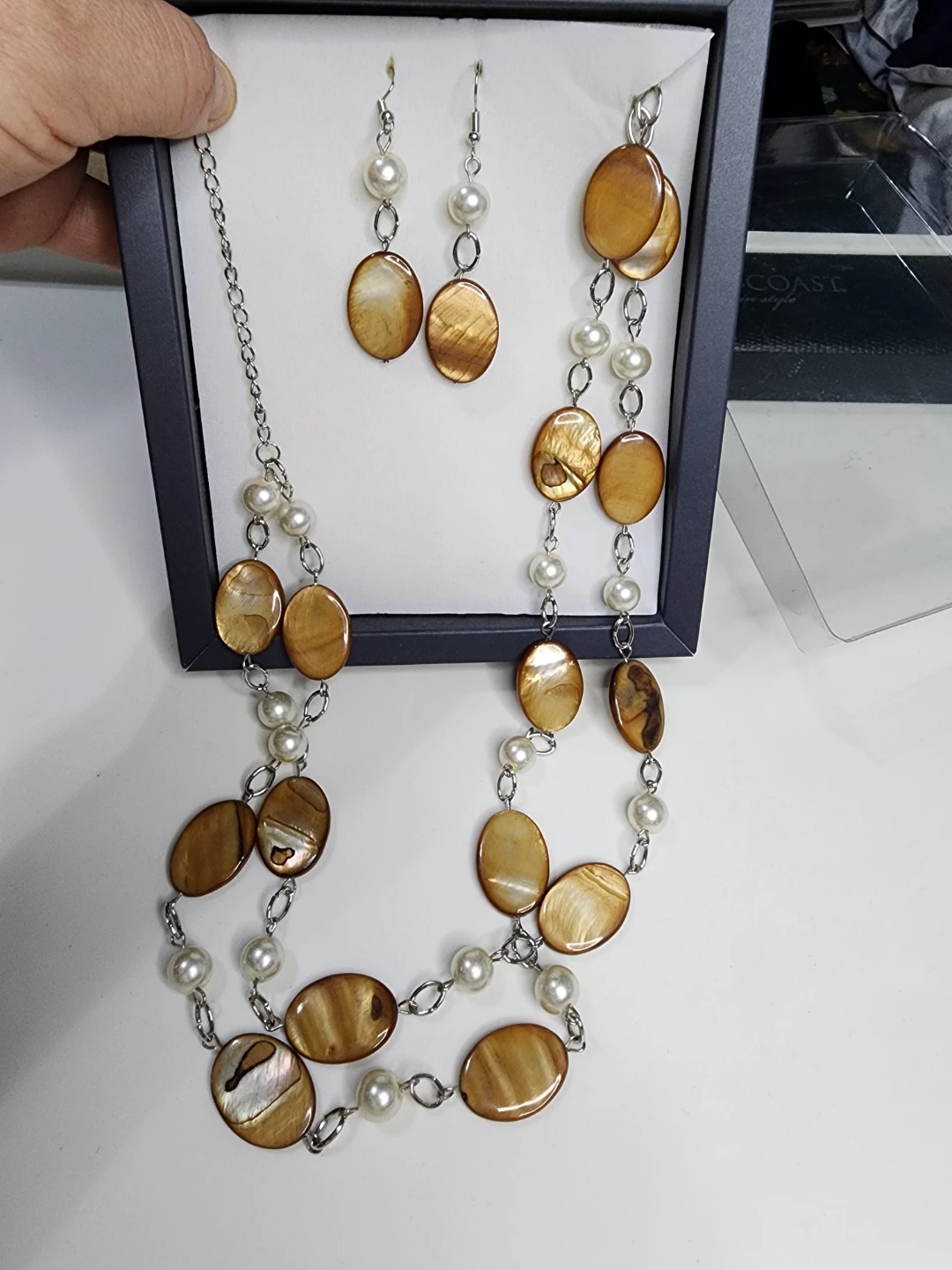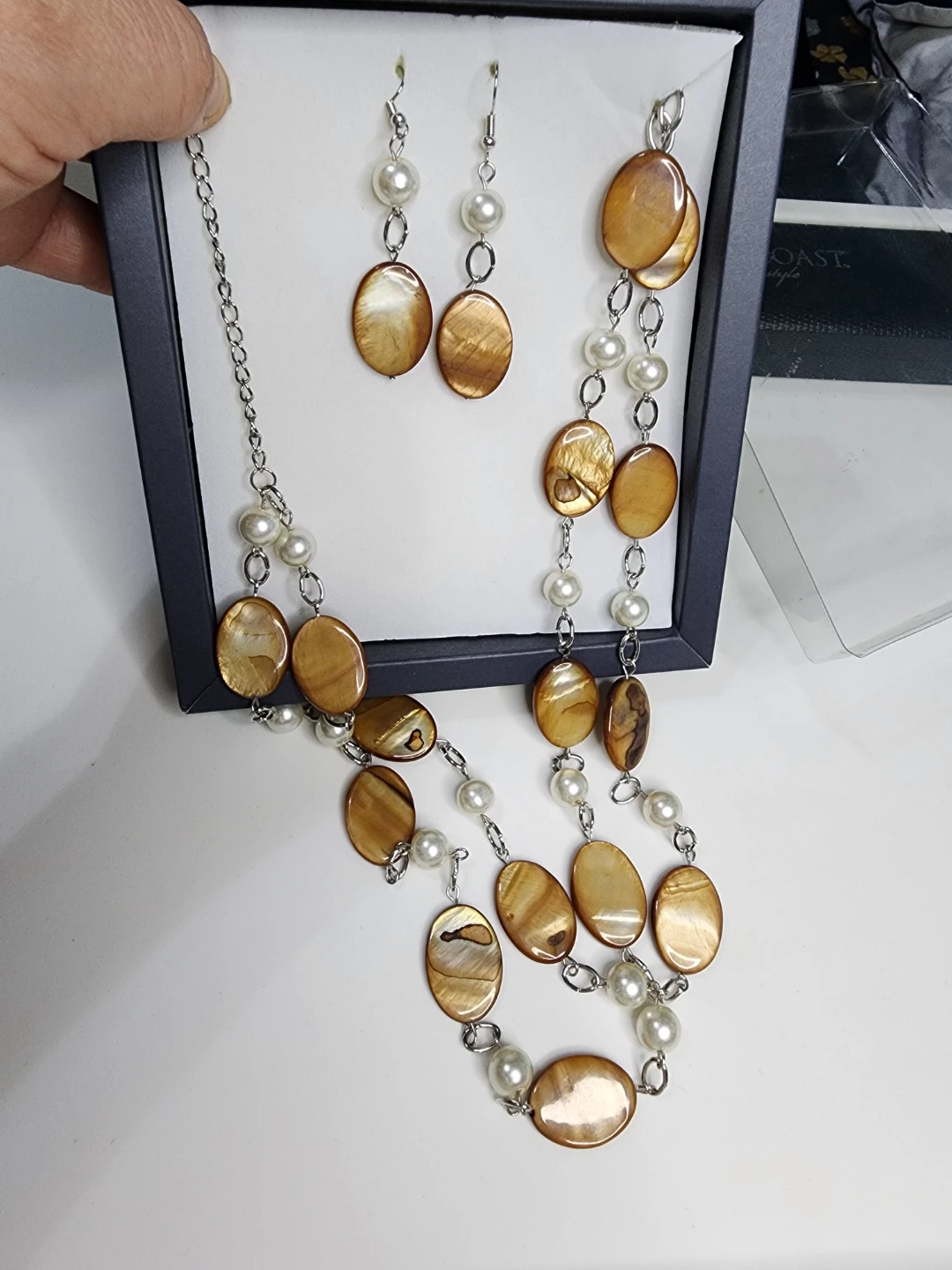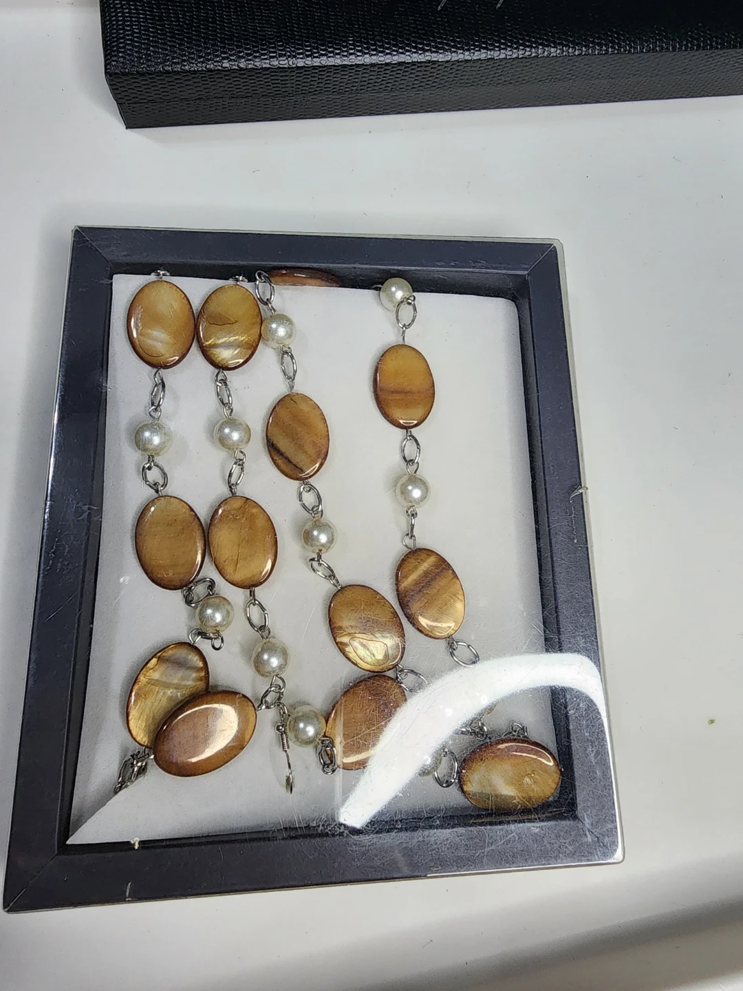 Selling a lovely pearl necklace and earring set! It comes in its original box and is in great condition. Perfect for adding a touch of elegance to any outfit