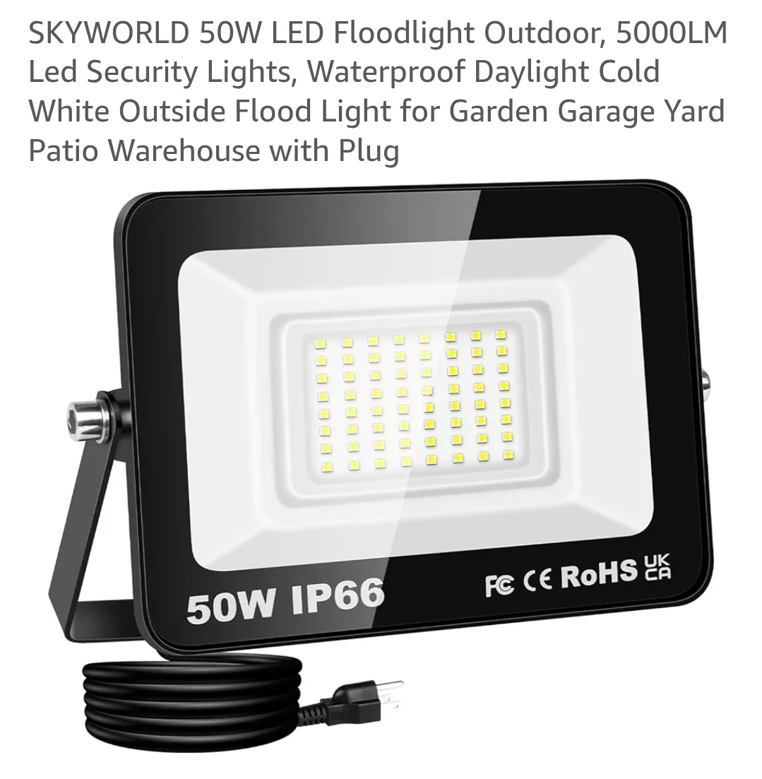 Looking to brighten up your space? I'm selling a 50W LED Floodlight, perfect for outdoor security lighting. It's waterproof and provides a daylight cold white light, ideal for gardens, garages, yards, patios, and warehouses. It's super bright at 3000LM, offers a cold white light at 6000K, and has a long lifespan of 30000 hours. It's also IP66 rated for both outdoor and indoor use