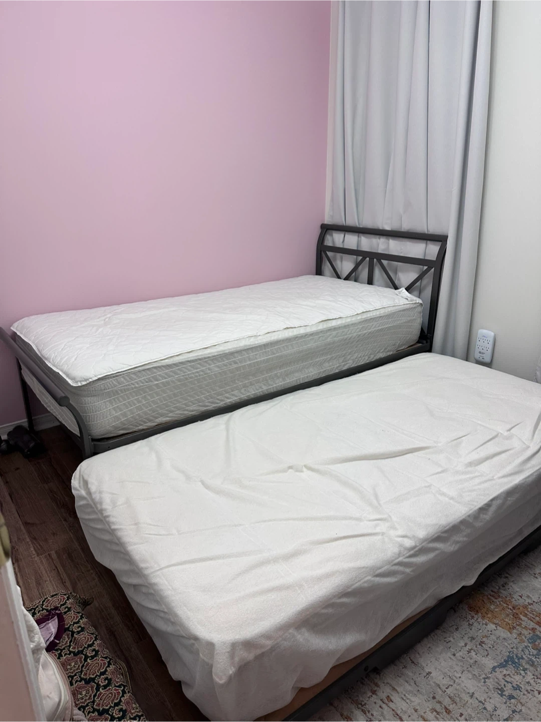 2 Costco beds. Selling a gray metal bed frame. It's in good condition and ready for a new home!
