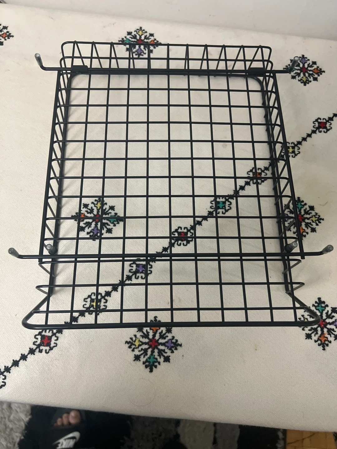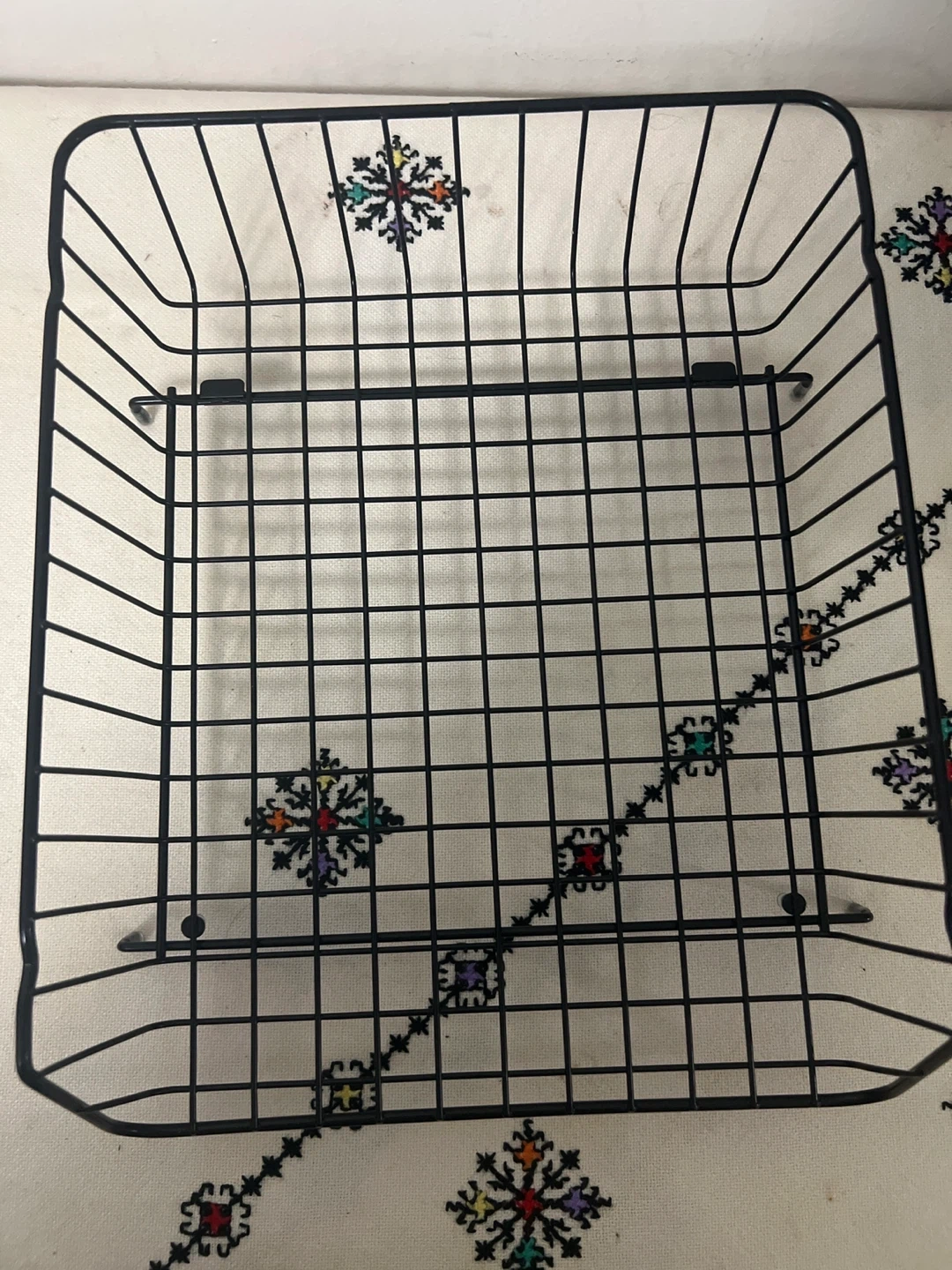 Selling a black wire storage basket, perfect for organizing your space! It's in great condition and ready to help keep things tidy