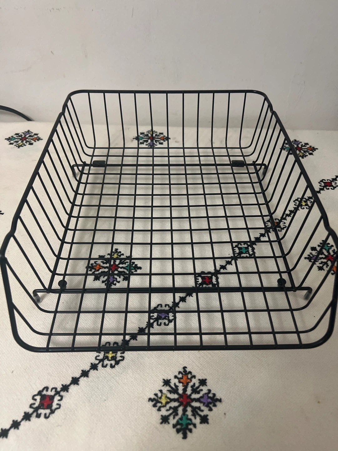 Selling a black wire storage basket, perfect for organizing your space! It's in great condition and ready to help keep things tidy