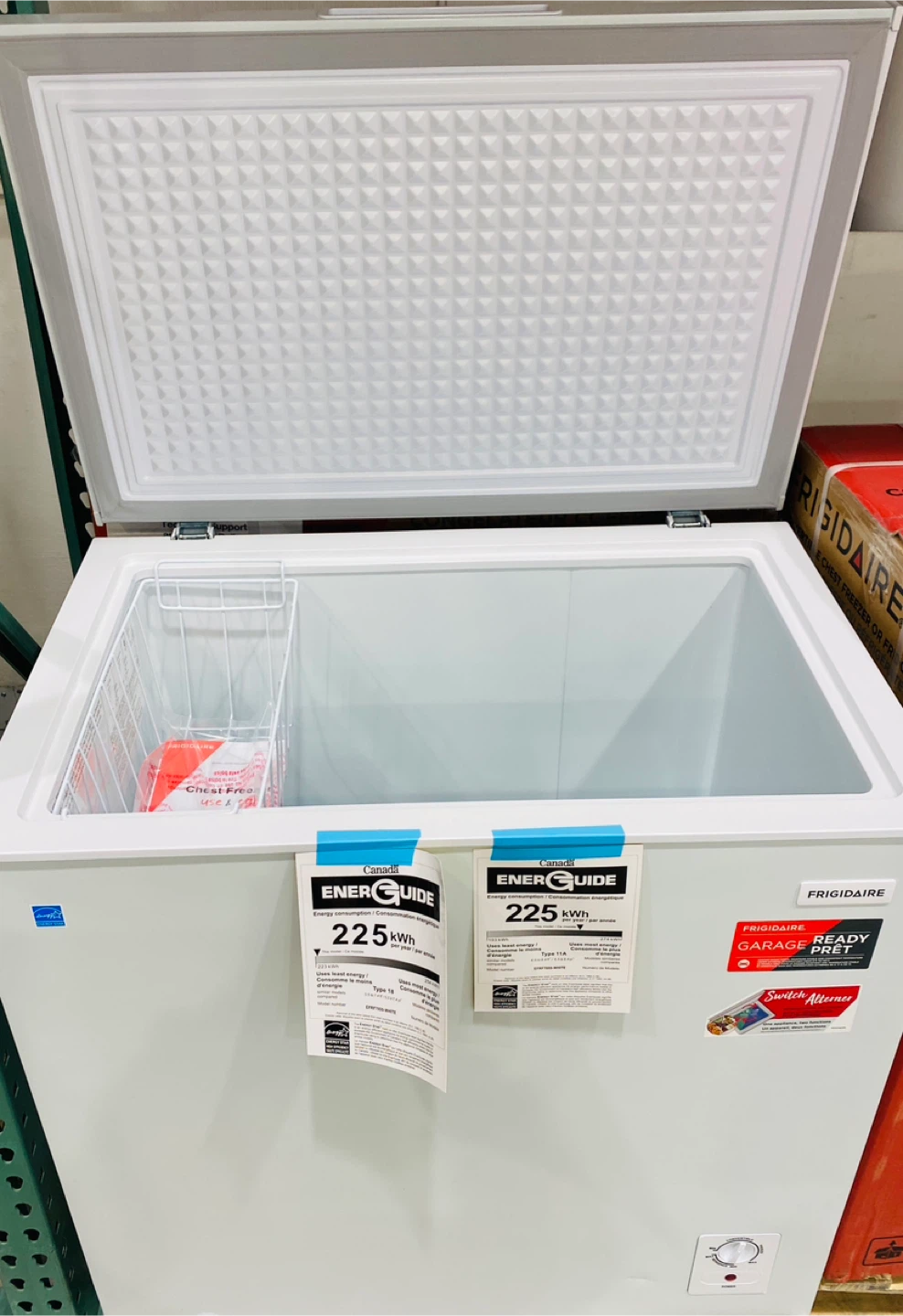 Frigidaire 7 cu Chest Freezer, garage ready convertible model, ie, can operate as either a fridge or a freezer. Measurements are 33” x 22”, 33” high New in factory box, two year factory warranty. $295. 204. 663.9988