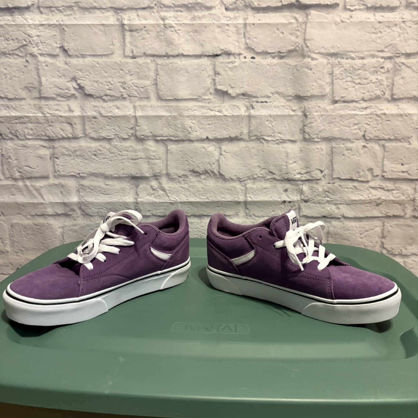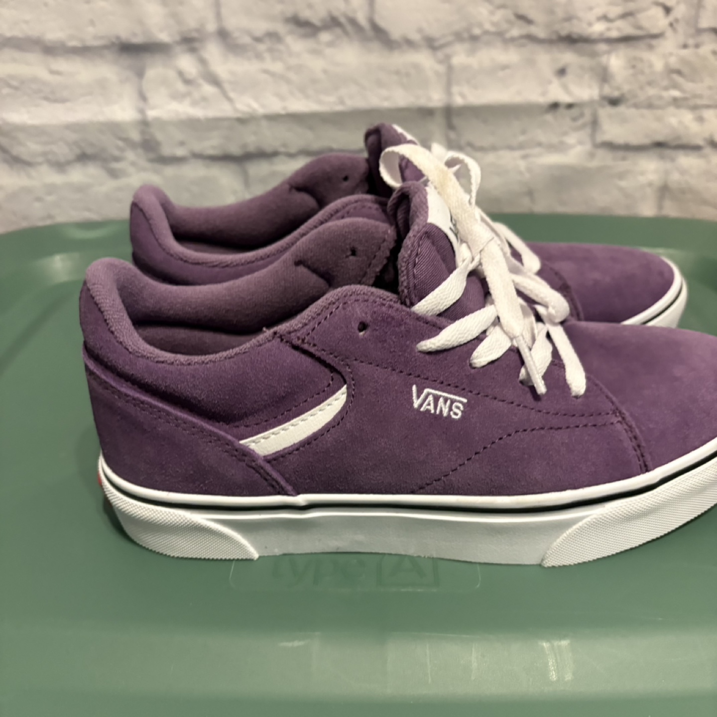 Here are a pair of purple Vans sneakers! They feature a suede material and the classic Vans stripe on the side. Great for everyday wear! New without box, retail is $60. Pick up only.