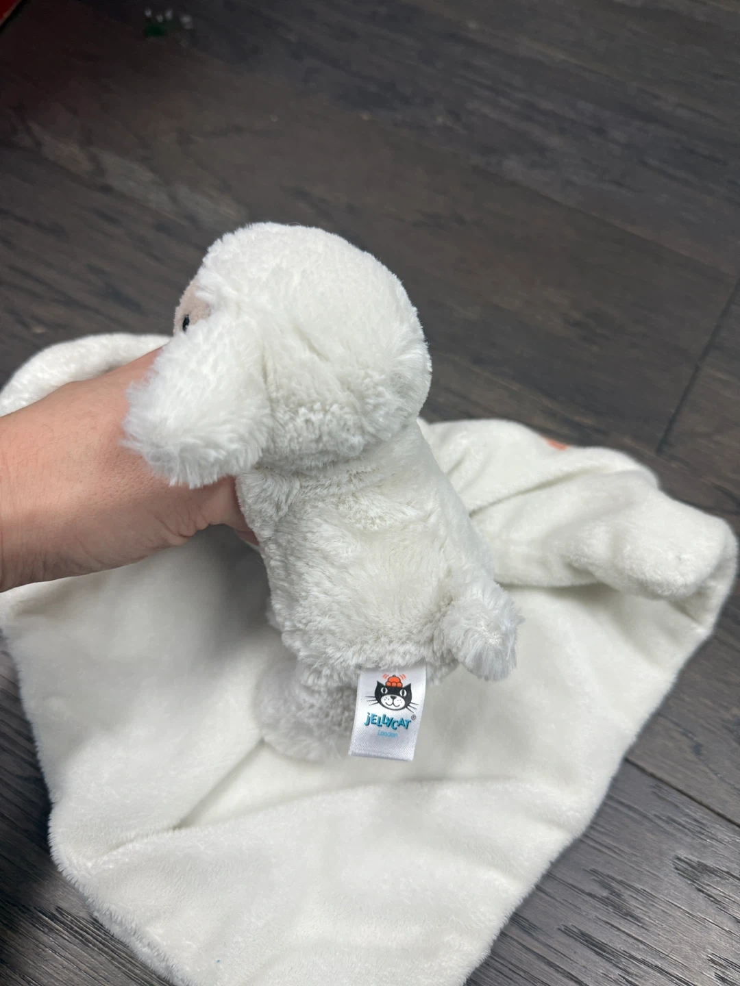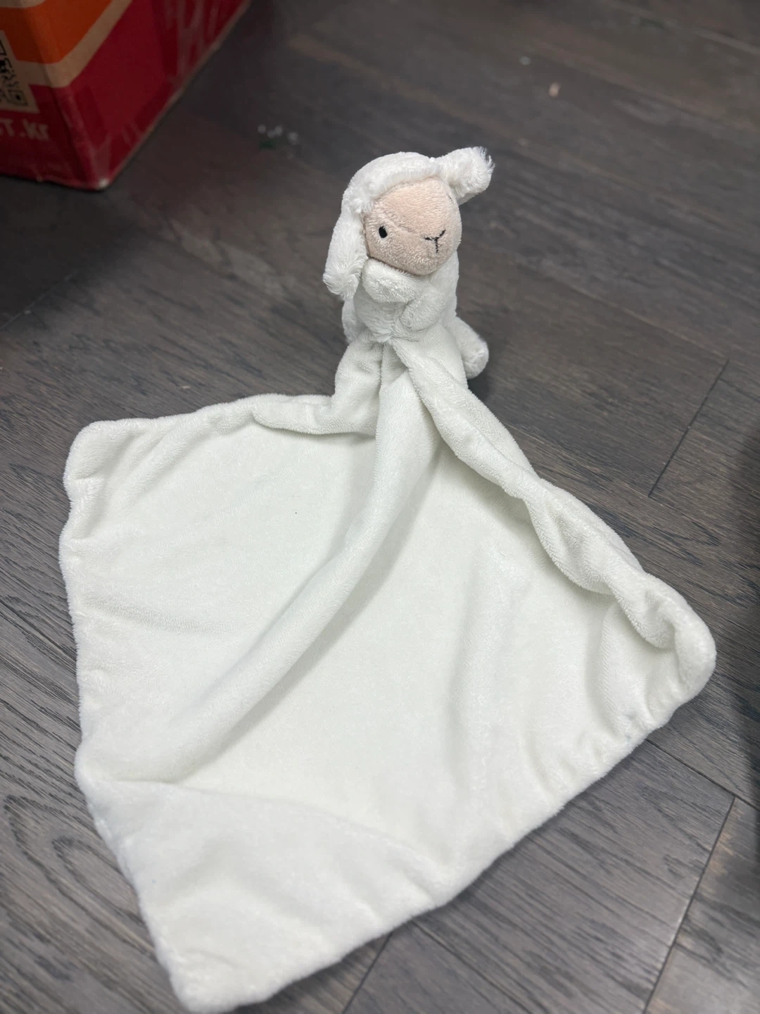 Selling a super soft Jellycat lamb soother! It's in great condition and ready for a new little one to love. The material is incredibly plush and gentle, perfect for snuggling. It's a sweet and comforting little lamb!