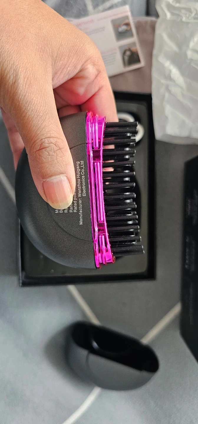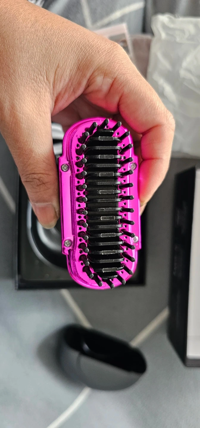 This is a multi-functional straight hair comb with Type-C charging. It's lightweight, weighing about 25g, and offers dual use for curling and straightening. It also neutralizes static electricity and provides a moisturizing luster. This comb is useful for quick styling on the go.