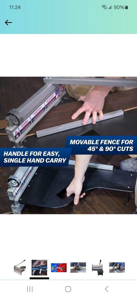 Unique features include a movable aluminum fence for precise, repeatable 45-degree cuts, 90-degree cuts, and an integrated handle for easy, single hand carry.