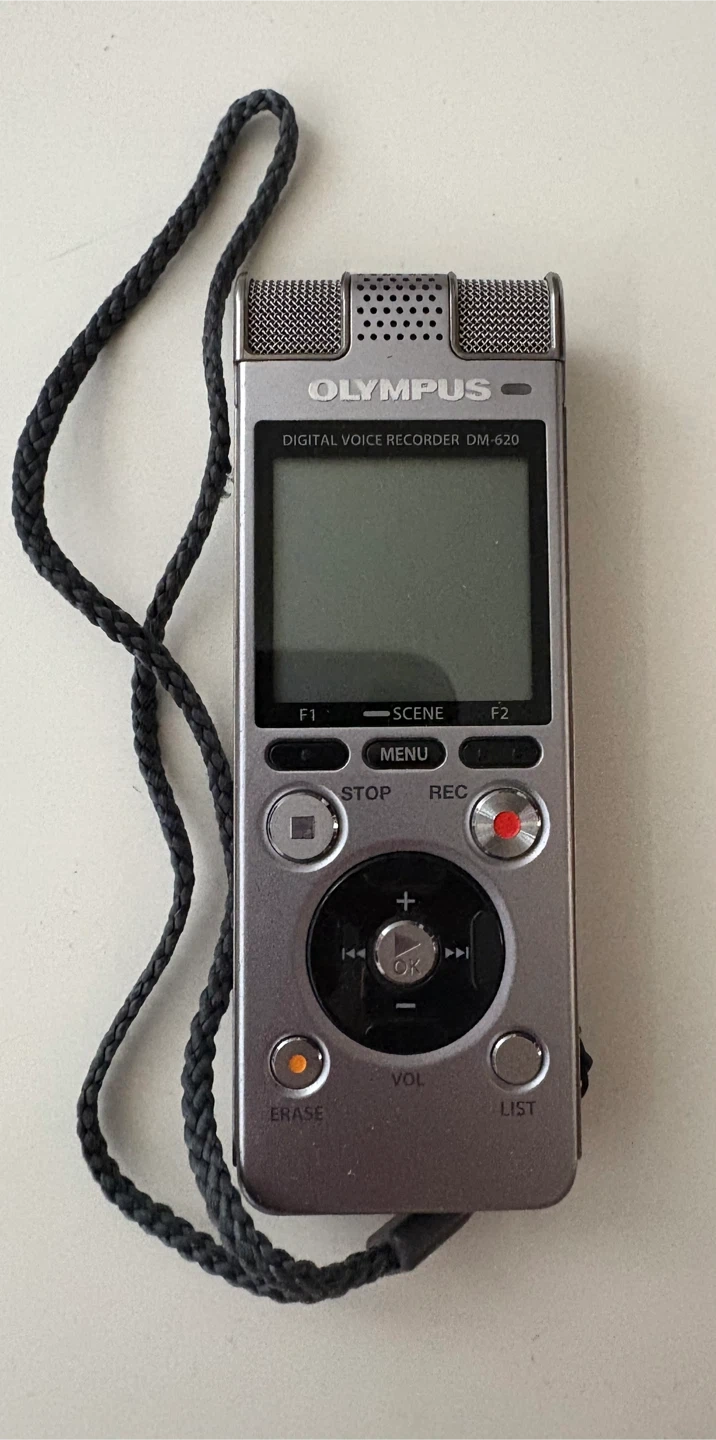 Olympus DM-620 digital voice recorder in perfect working condition. Very clean and well cared for. Comes with charging cable