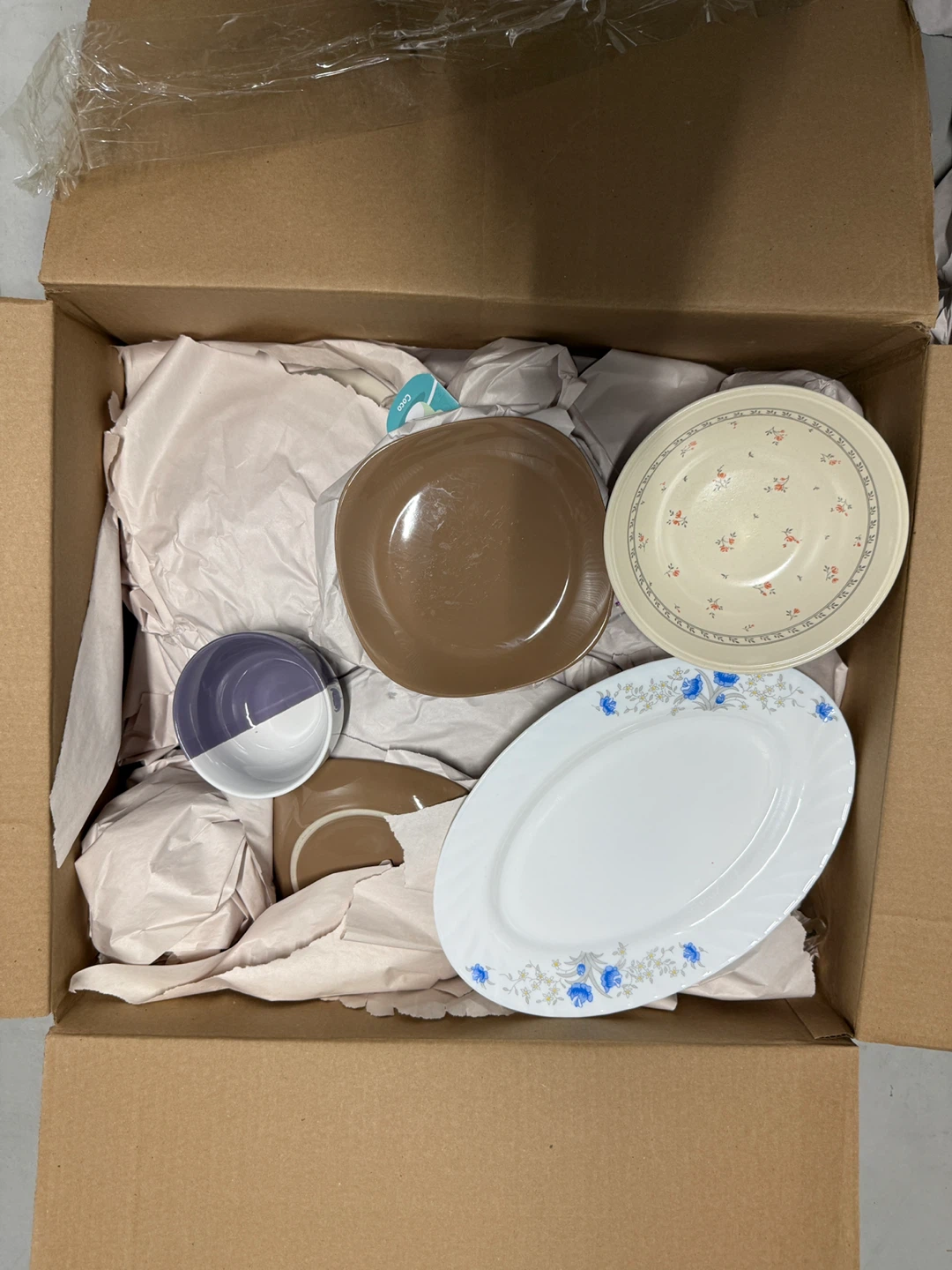 This is a set of black dishes and clear glass items. Includes plates, bowls, and glasses. Dishware is black, glasses are clear. Perfect for everyday use!