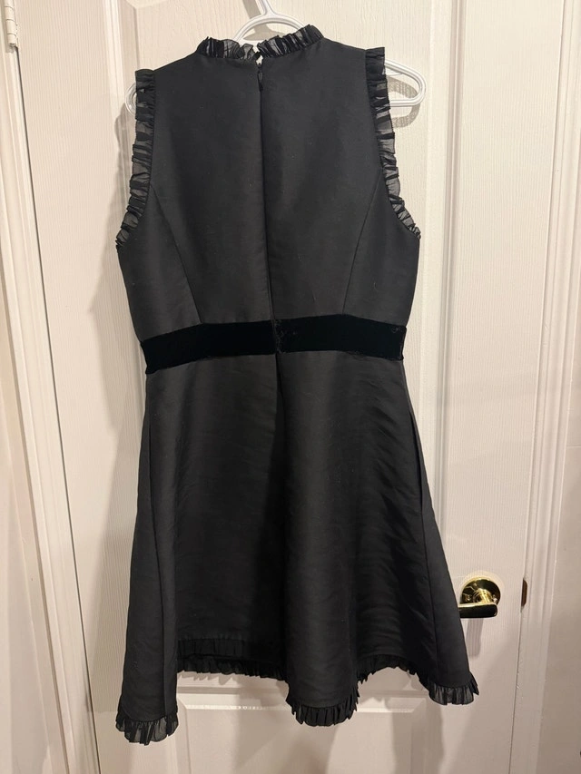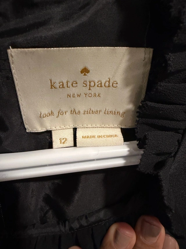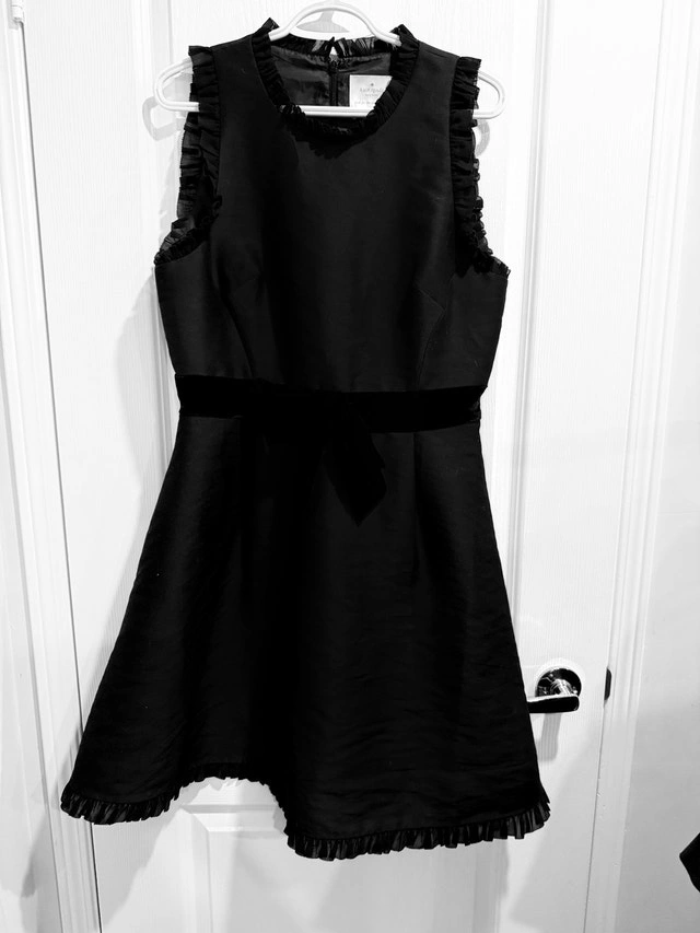 Get ready to shine in this Kate Spade New York Star Bright dress, featuring a charming velvet bow and a playful flare silhouette. This dress is in good, used condition, perfect for adding a touch of elegance to any occasion. Size: 12, Colour: Black, Style: Fit and Flare, Details: Velvet Bow, Ruffle Trim. Condition: Used - Like new. Size: Large (12-14).