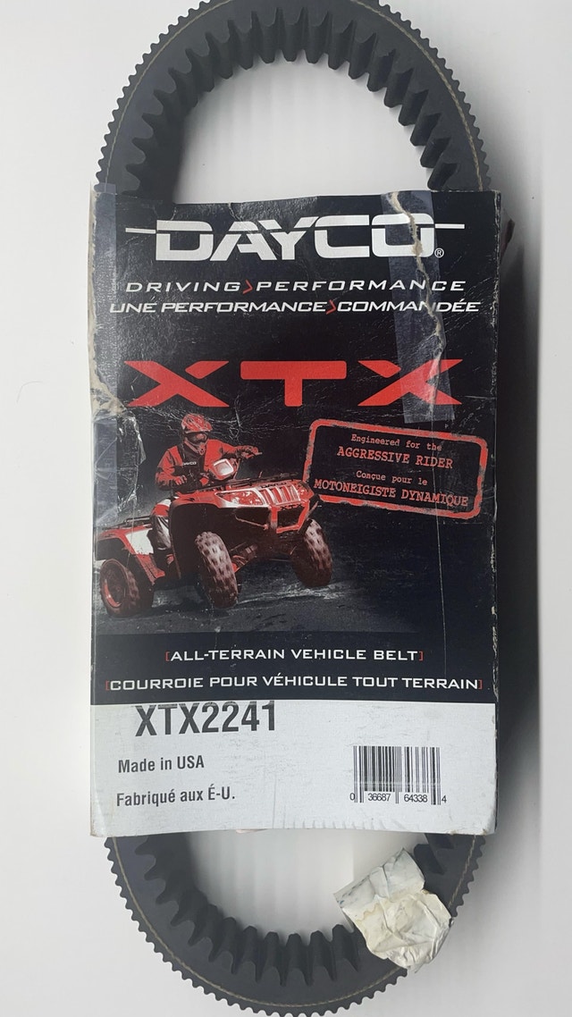 New Dayco XTX2241 all-terrain vehicle drivebelt, designed for optimal performance and durability in all conditions. The belt is brand new in the original packaging.