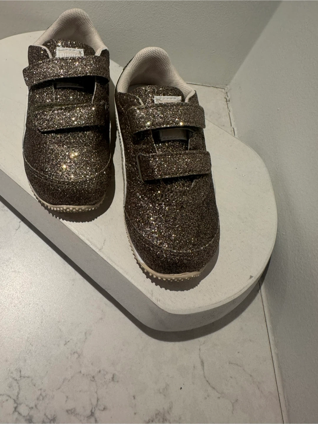 Shiny glitter design. Easy velcro straps. Perfect for active play.