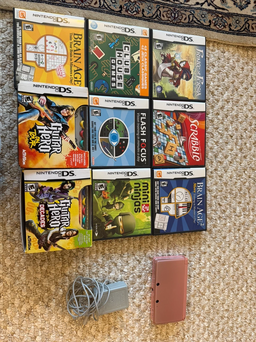 Nintendo 3DS Pink w/ Charger & 10 Games
