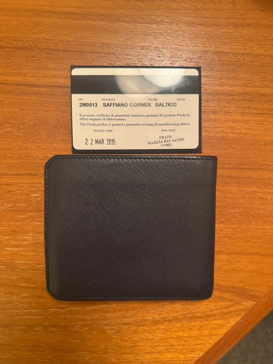 Selling a Prada Saffiano Corner Baltico wallet. The authenticity certificate card is included. The manufacturing date is 2015 March. It comes as is for it was purchased a long time ago
