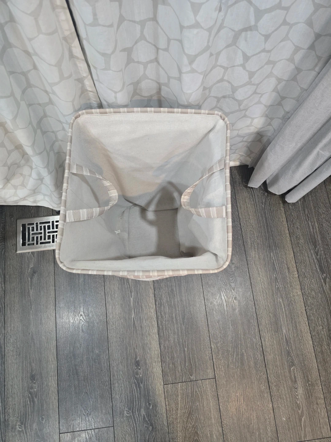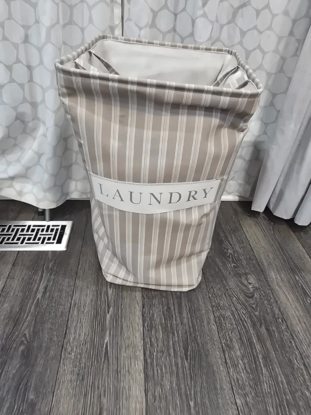 Laundry hamper in great condition! It's a striped fabric design, perfect for keeping things tidy in your laundry room or bedroom
