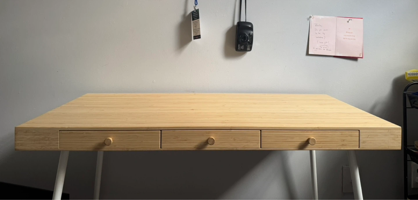 I’m selling my Ikea Bamboo Desk and my chair. I’ve had this office set up for less than a year and have loved how spacious and comfy it is.