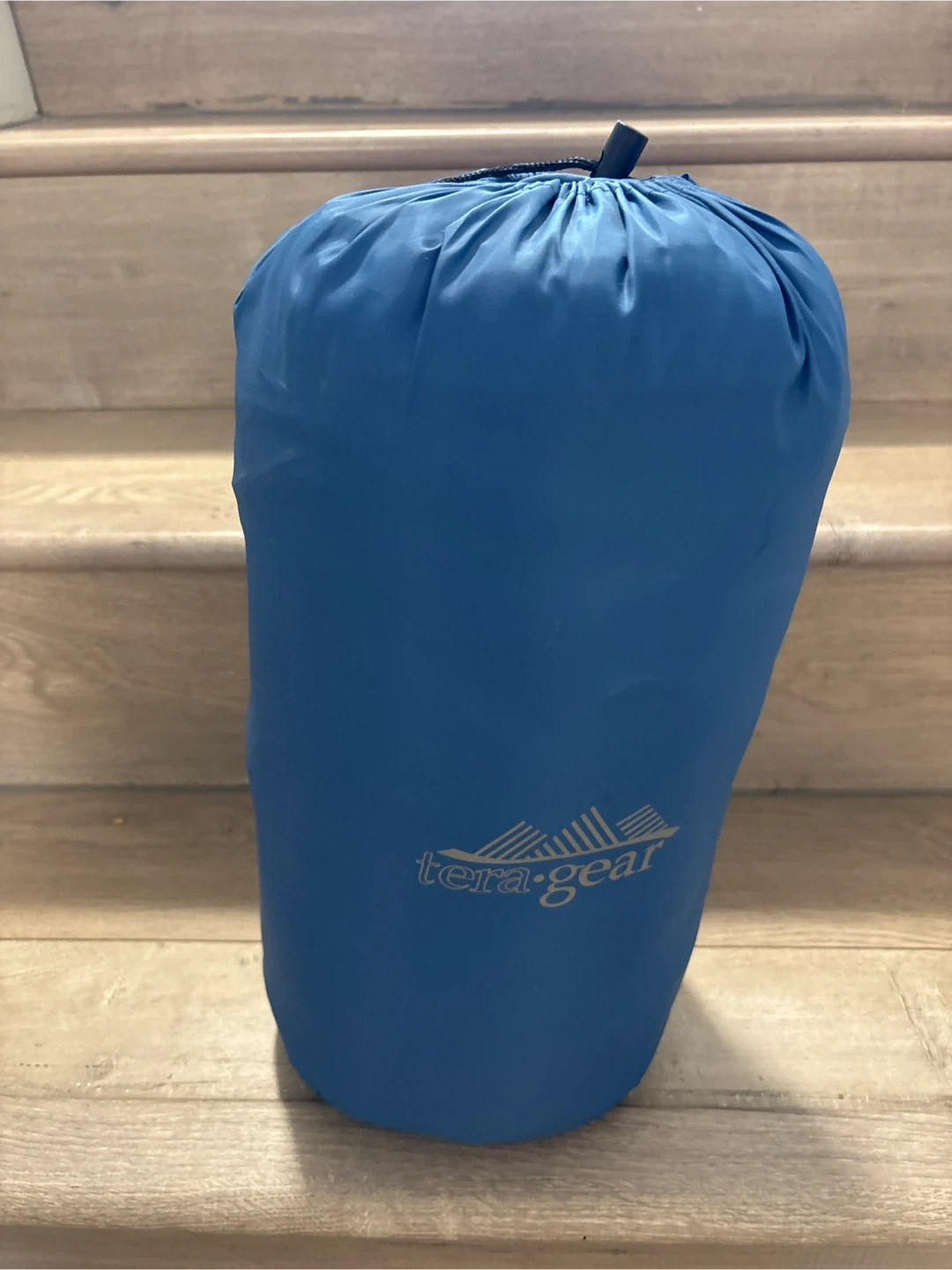 This blue Tera Gear sleeping bag is in perfect condition. It includes a stuff sack for easy transport. Perfect for camping trips!