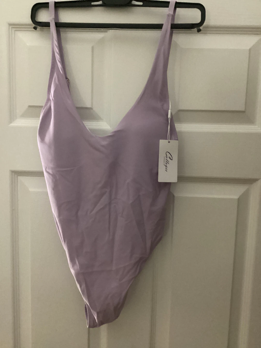 Selling a new Colloyes one-piece swimsuit in a lovely light purple colour. It's a size medium and in great condition. The tag shows it originally retailed for $119.99. Perfect for the summer or spa!