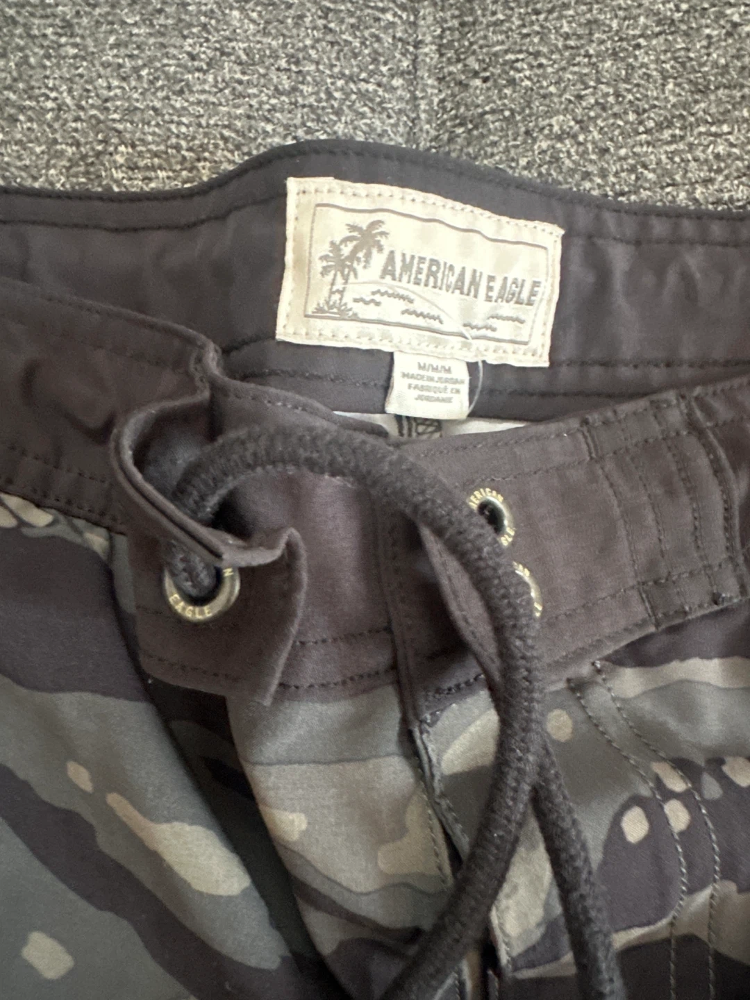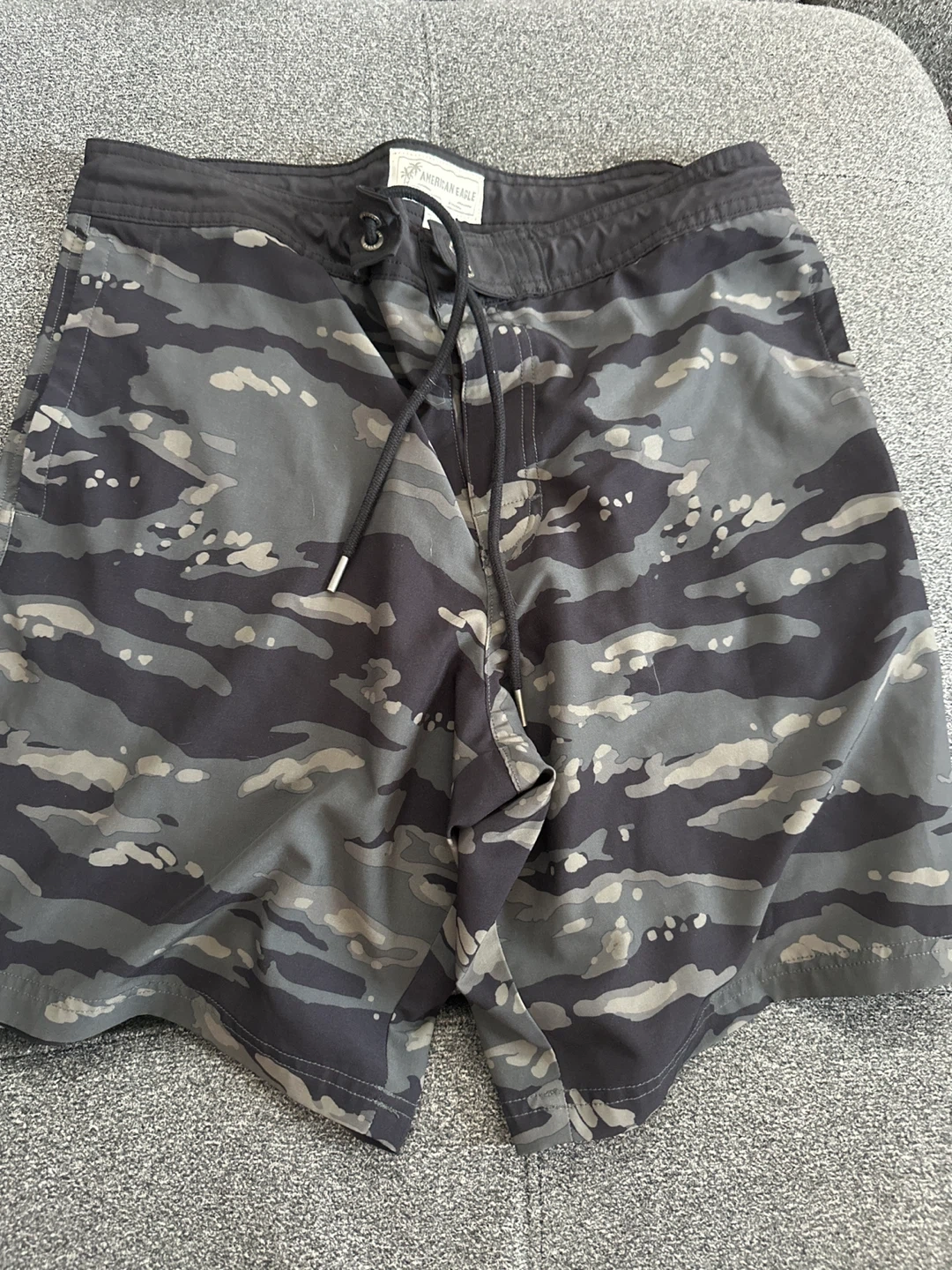 Selling a pair of American Eagle swim trunks in a cool camo pattern. They are a size medium and in great condition! Perfect for the beach or pool