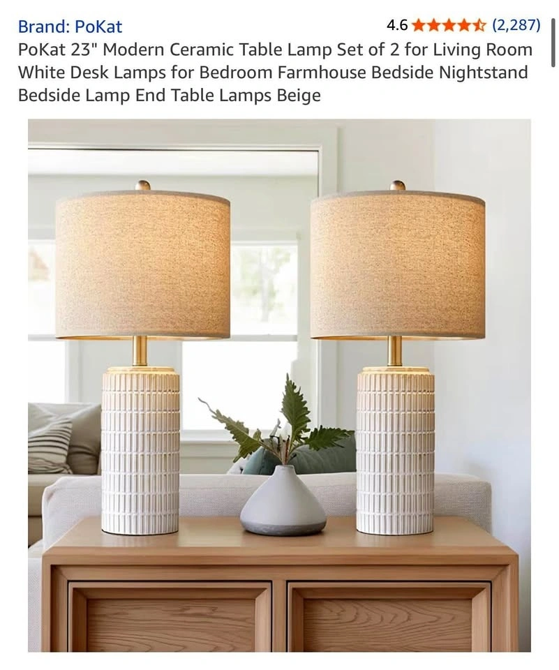 PoKat 23" Modern Ceramic Table Lamp Set of 2 for Living Room White Desk Lamps for Bedroom Farmhouse.