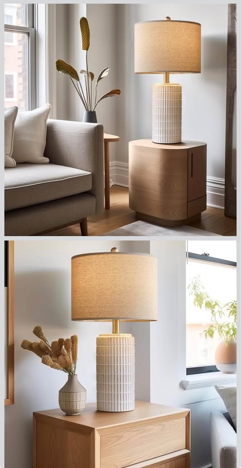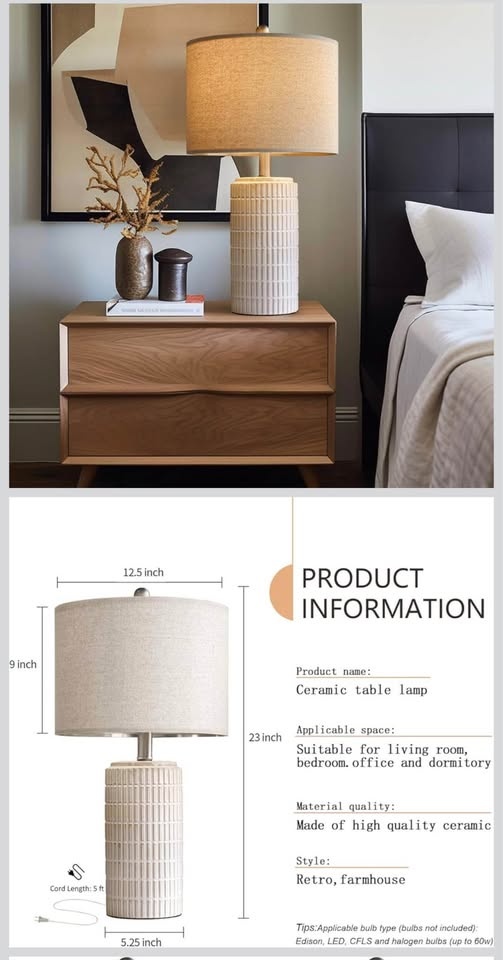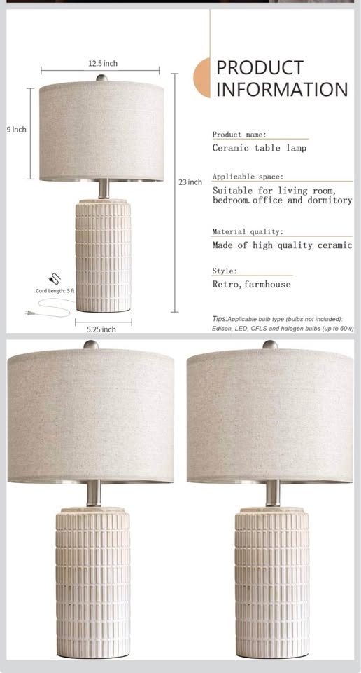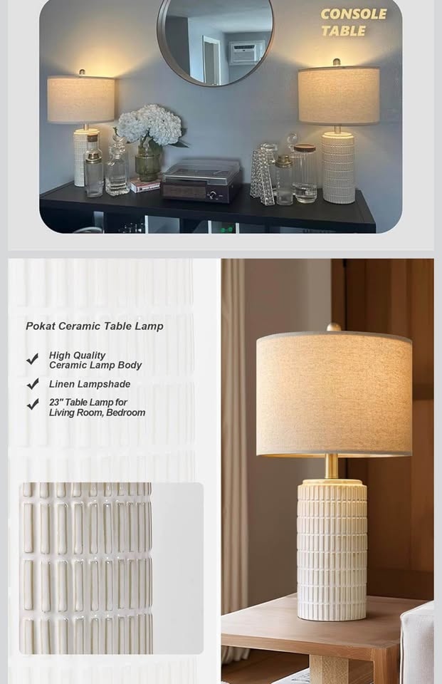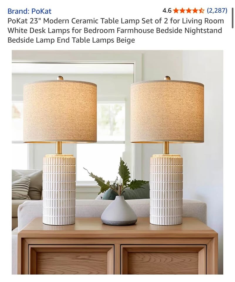 PoKat 23" Modern Ceramic Table Lamp Set of 2 for Living Room White Desk Lamps for Bedroom Farmhouse.