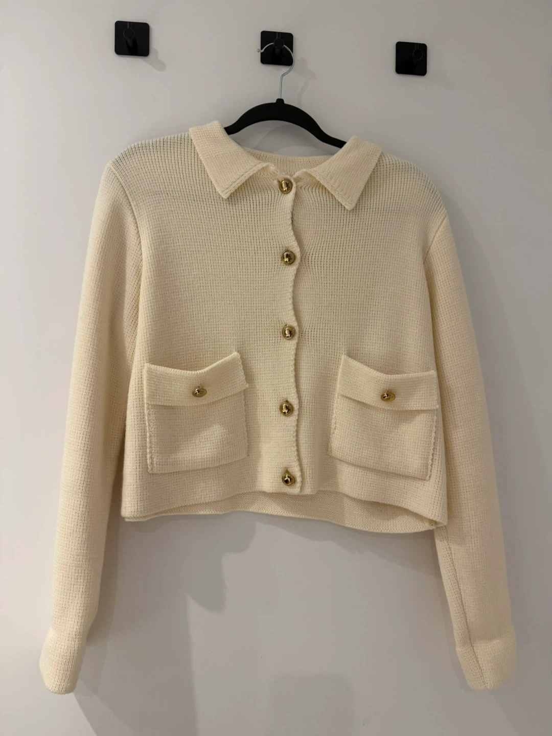 Buy & SellCream Knit CardiganCream Knit Cardigan$26A cream knit cardigan bought from Korean department store. It has a classic look with gold buttons and two front pockets. Wore it less than 3 timesConditionLike newSizeS-MBrandKorean brandWHERE TO MEETAround square one areaView MapSELLERverifiedJJErin Mills650 reviews0 chats·4 favorites·42 viewsSEND CHAT TO SELLERHi JJ! I’m interested in your listing.Hi JJ! I’m interested in your listing.Get the Karrot app to chatSign In to chat